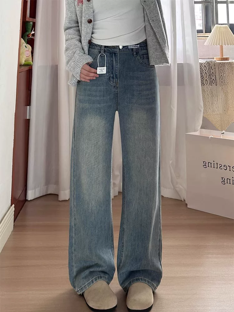 Quần jeans dáng chuông ống đứng cho nữ thu đông 2024, size lớn, cạp cao, rộng rãi, tôn dáng, ống rộng