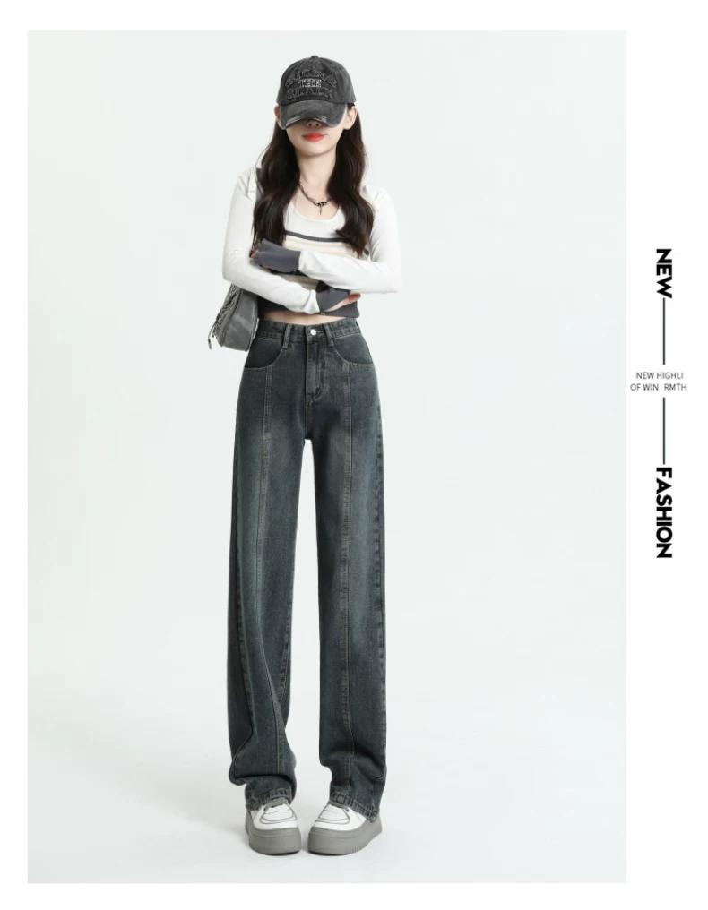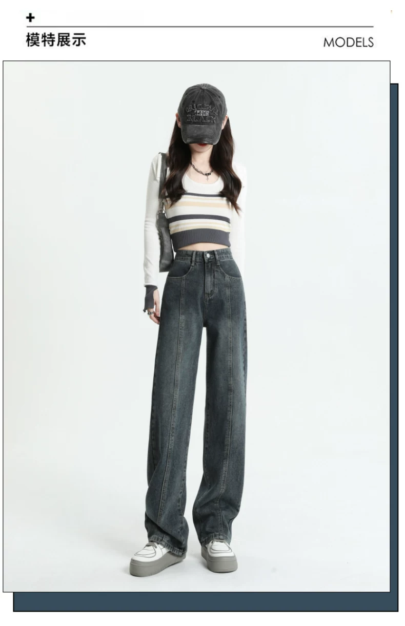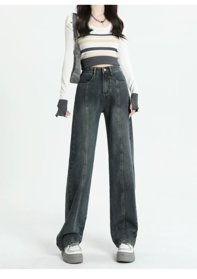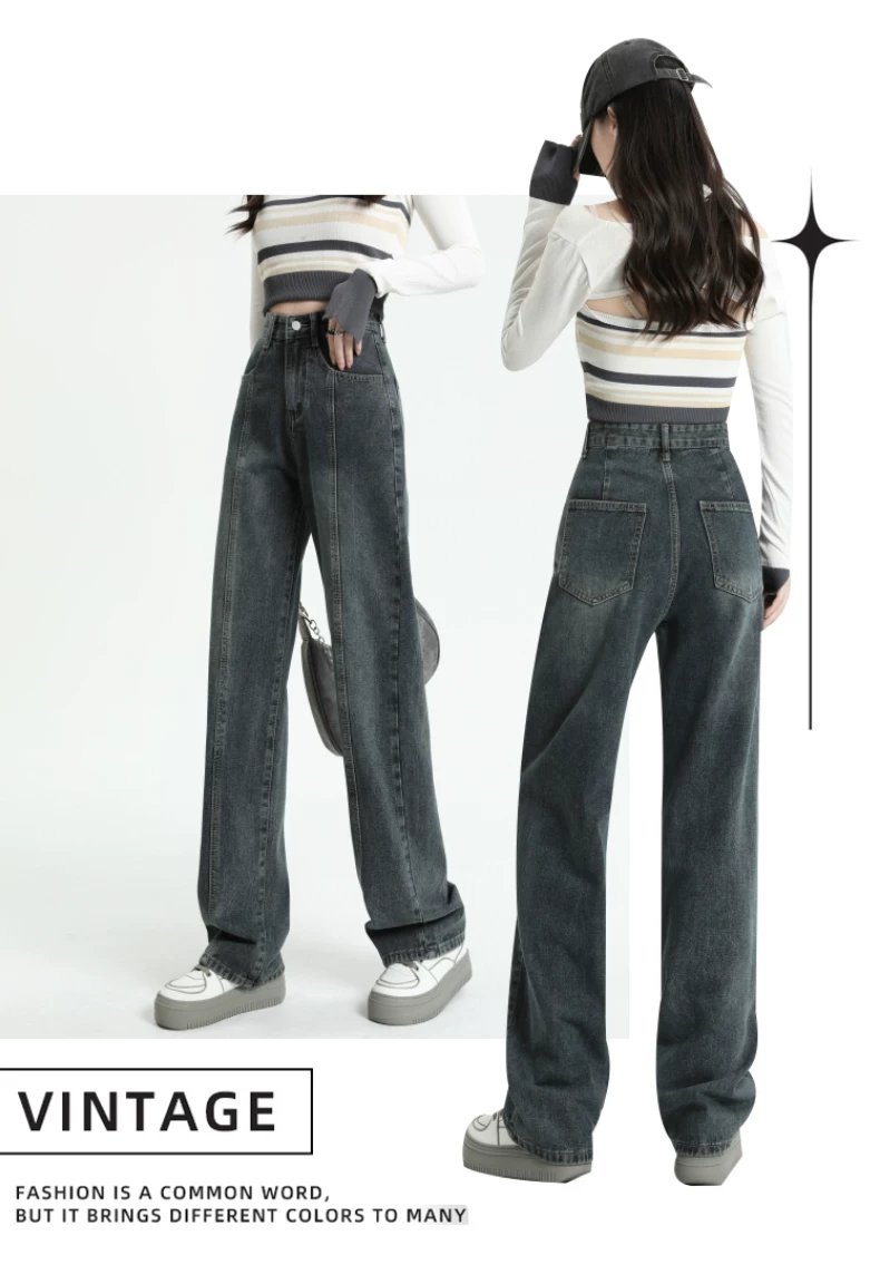 Quần jeans dáng chuông retro ống thẳng cho nữ, size lớn, cạp cao, dáng rộng, dài chấm đất, thích hợp cho đầu thu