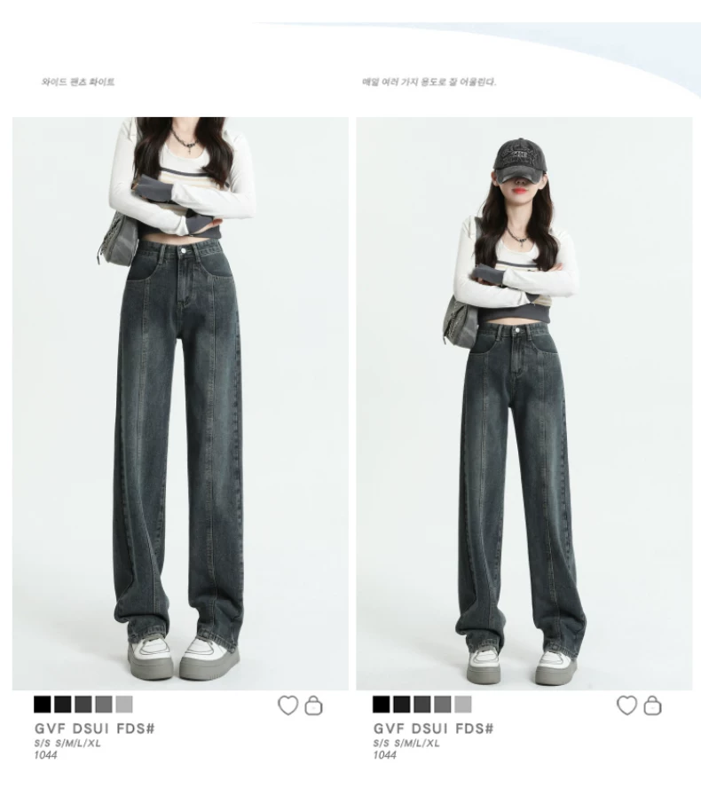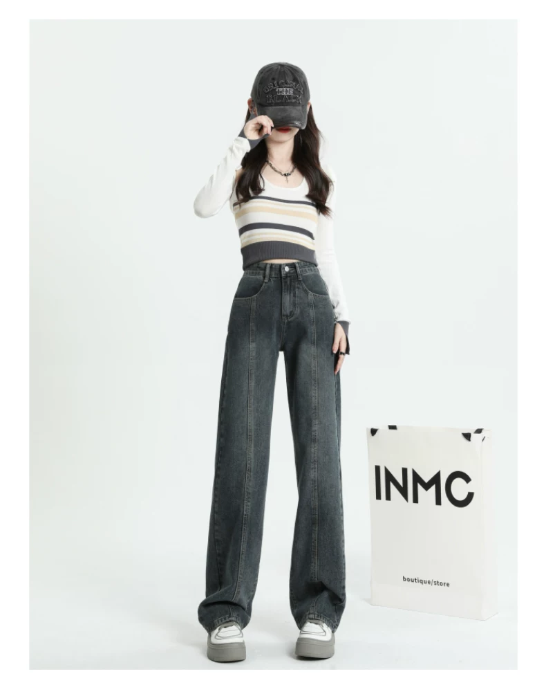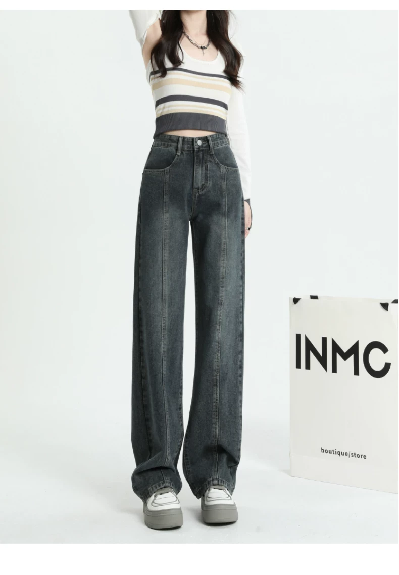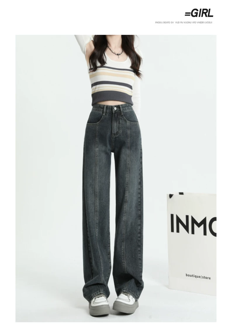 Quần jeans dáng chuông retro ống thẳng cho nữ, size lớn, cạp cao, dáng rộng, dài chấm đất, thích hợp cho đầu thu