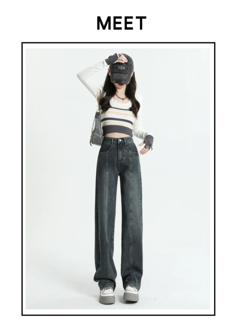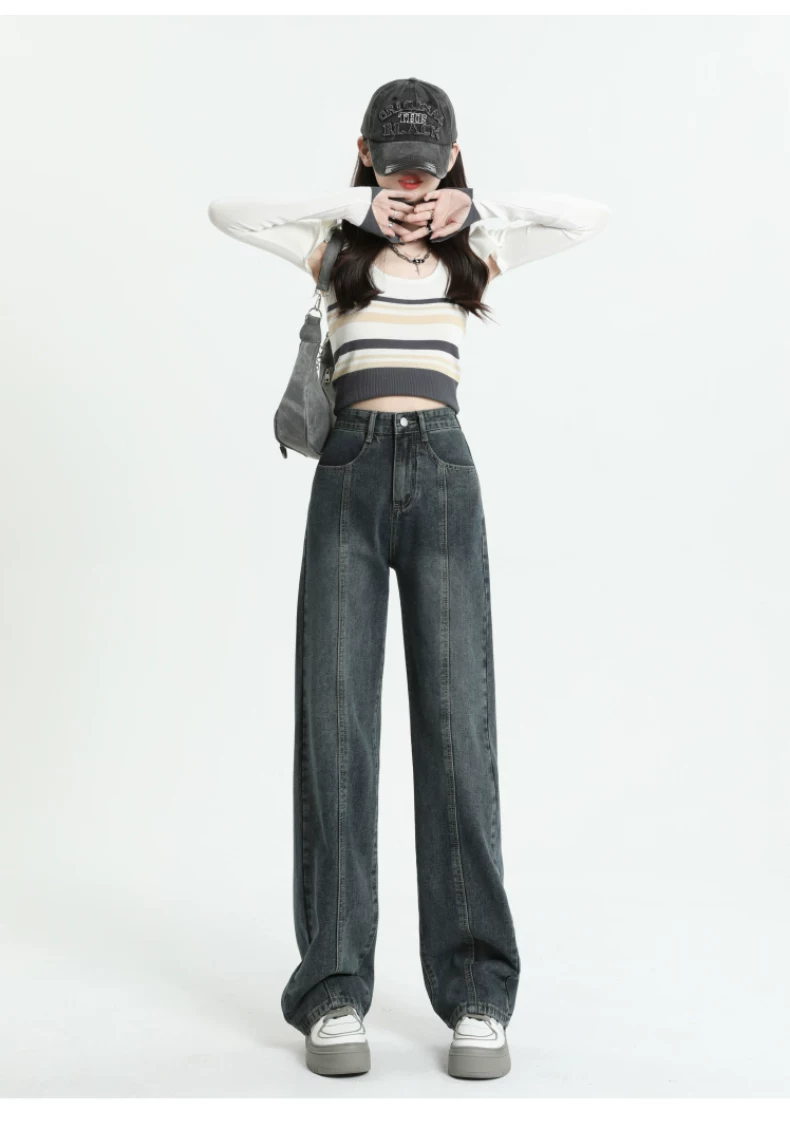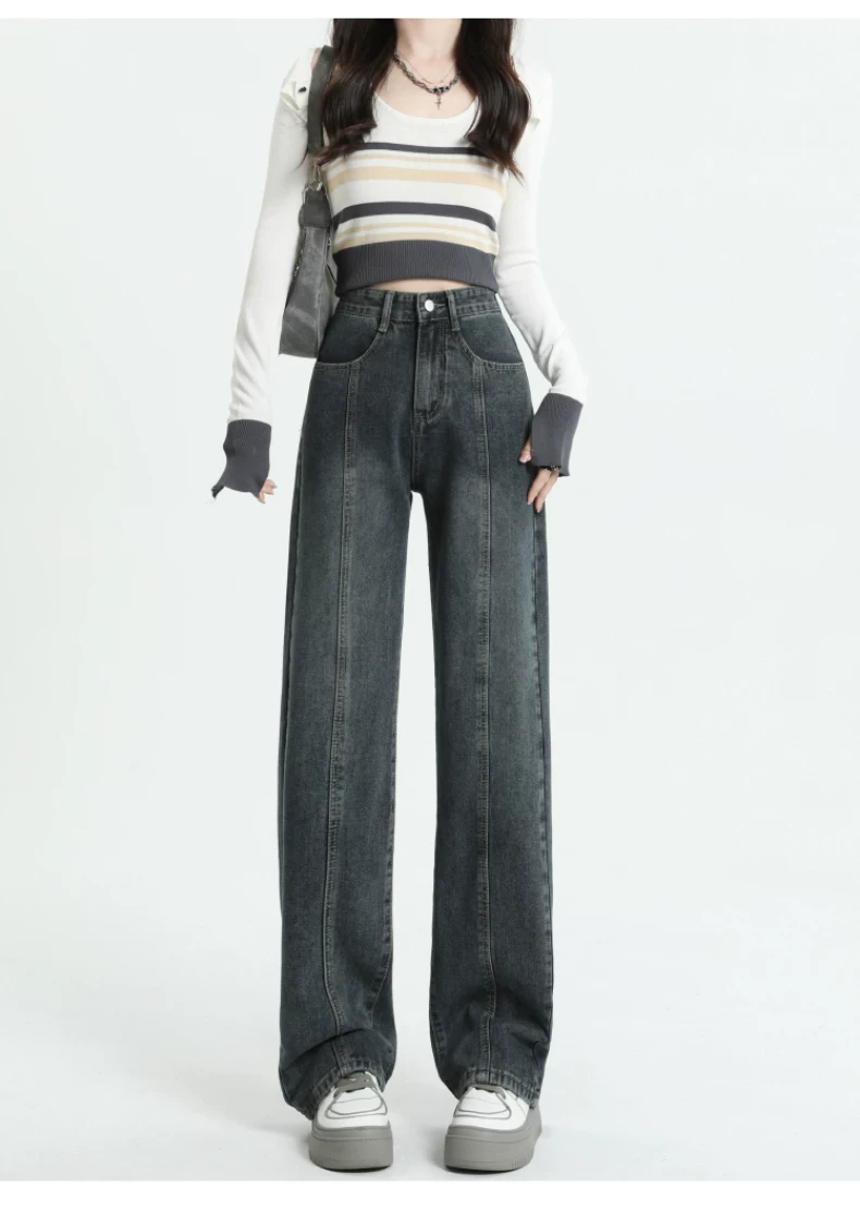 - Quần jeans dáng chuông retro ống thẳng cho nữ, size lớn, cạp cao, dáng rộng, dài chấm đất, thích hợp cho đầu thu