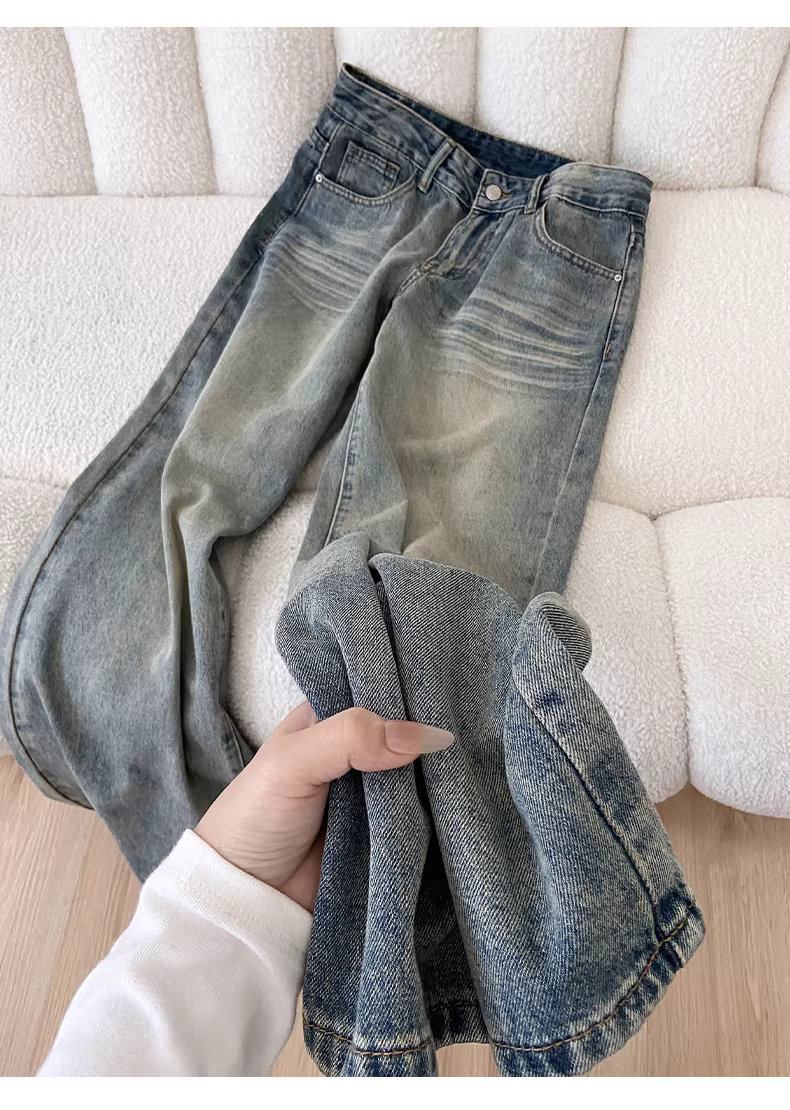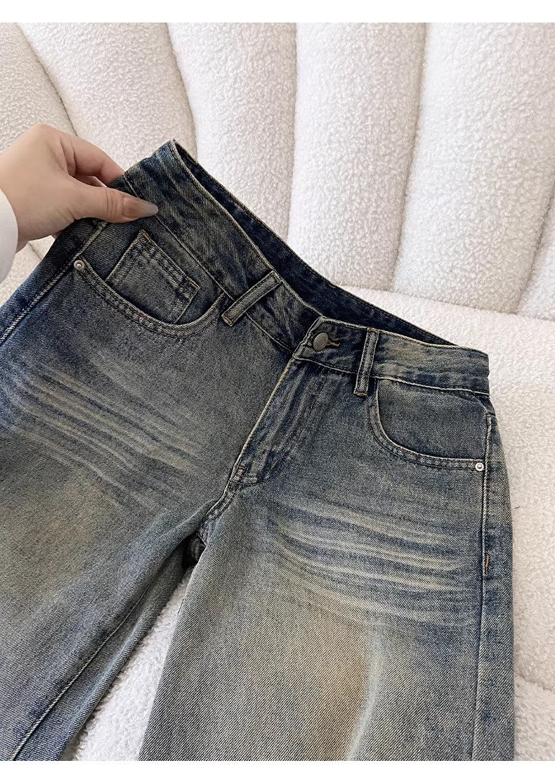 - Quần jeans dáng loe kiểu Mỹ La Chapelle dành cho nữ, mẫu mới thu đông 2025, cạp cao, không bó sát.