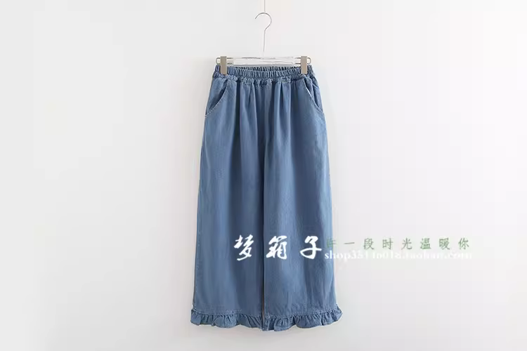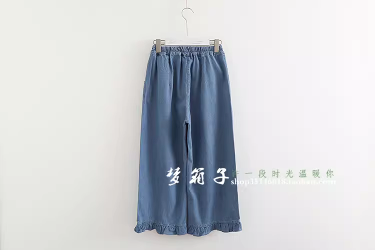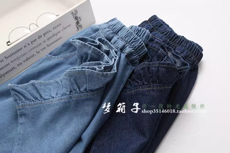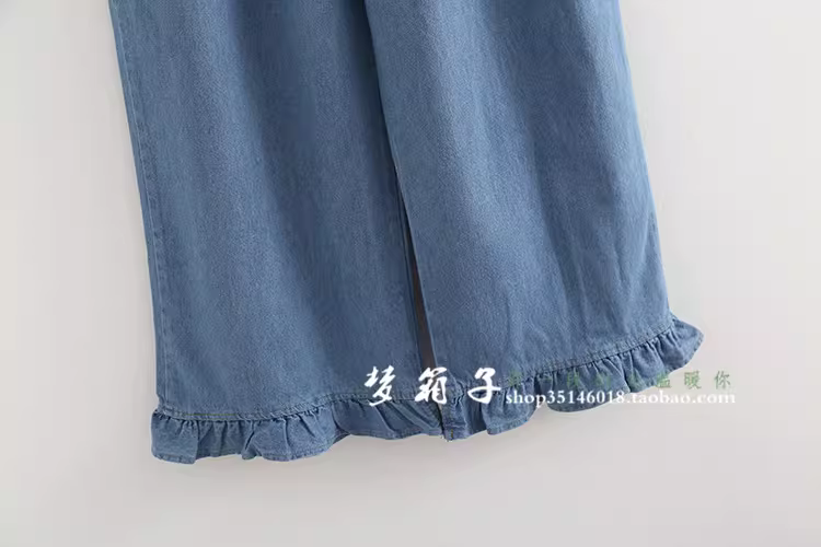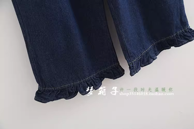 裤腿的木耳边拼接增加甜美感