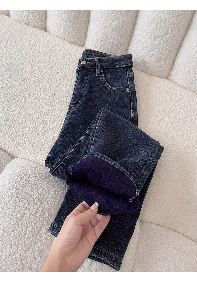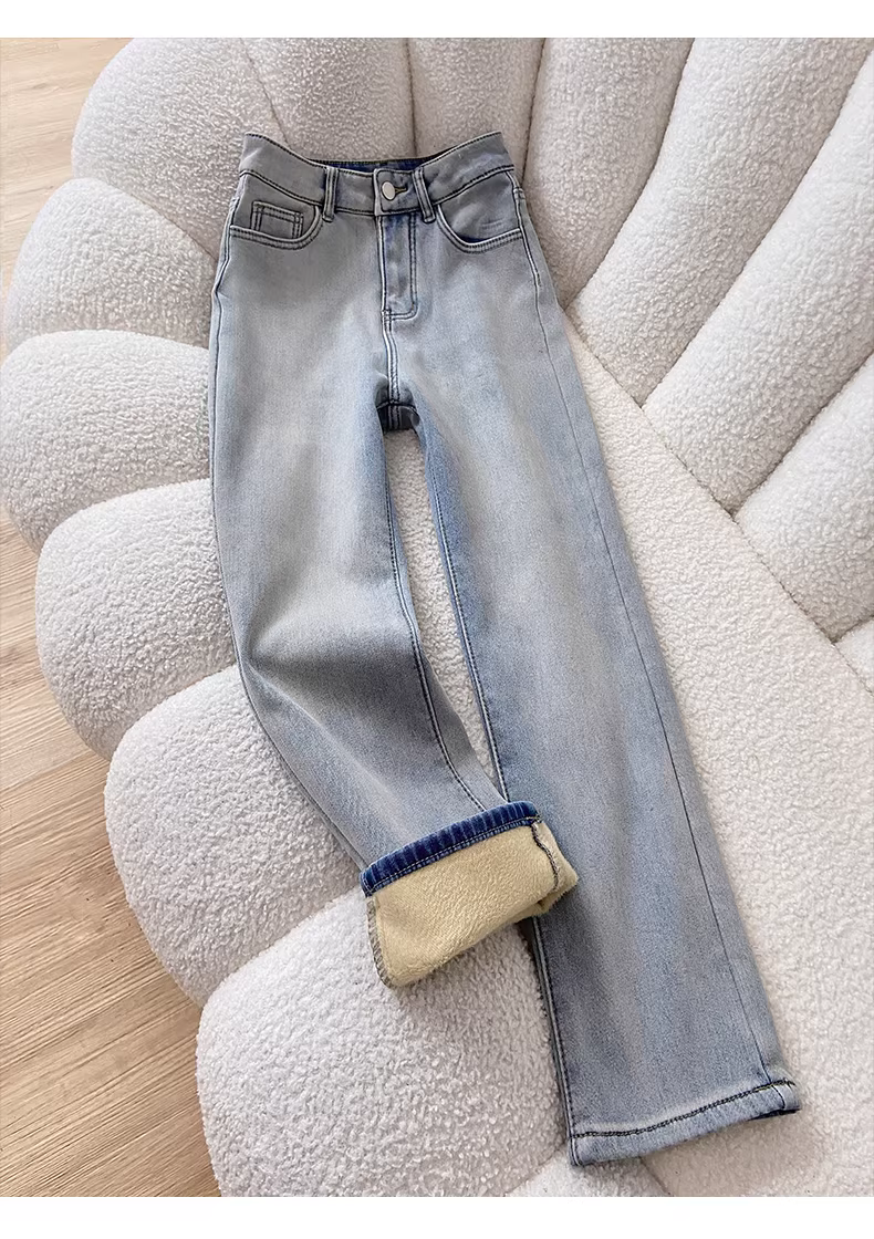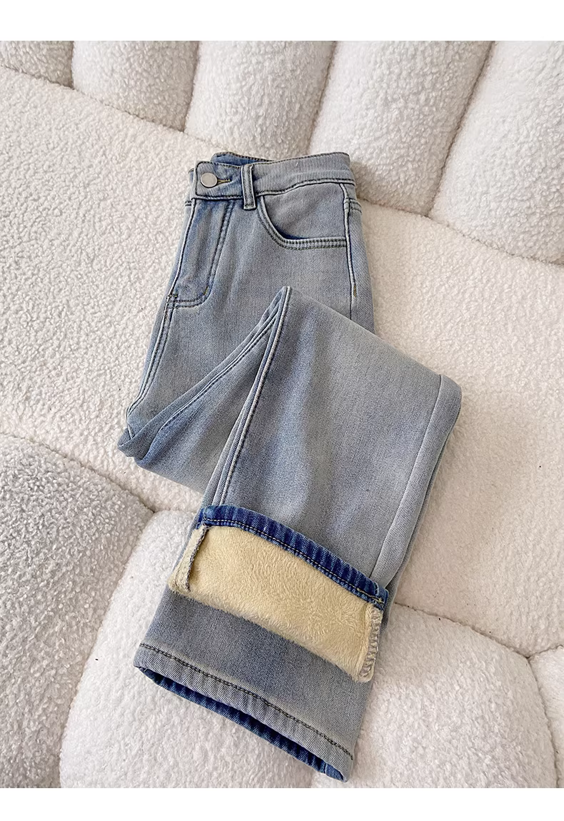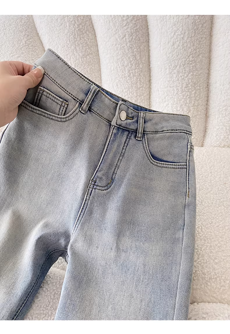 - Quần jeans dày lót lông màu sáng La Chapelle dành cho nữ, kiểu dáng ôm sát, dài 9 phần, kiểu dáng thuốc lá, mới thu đông 2025