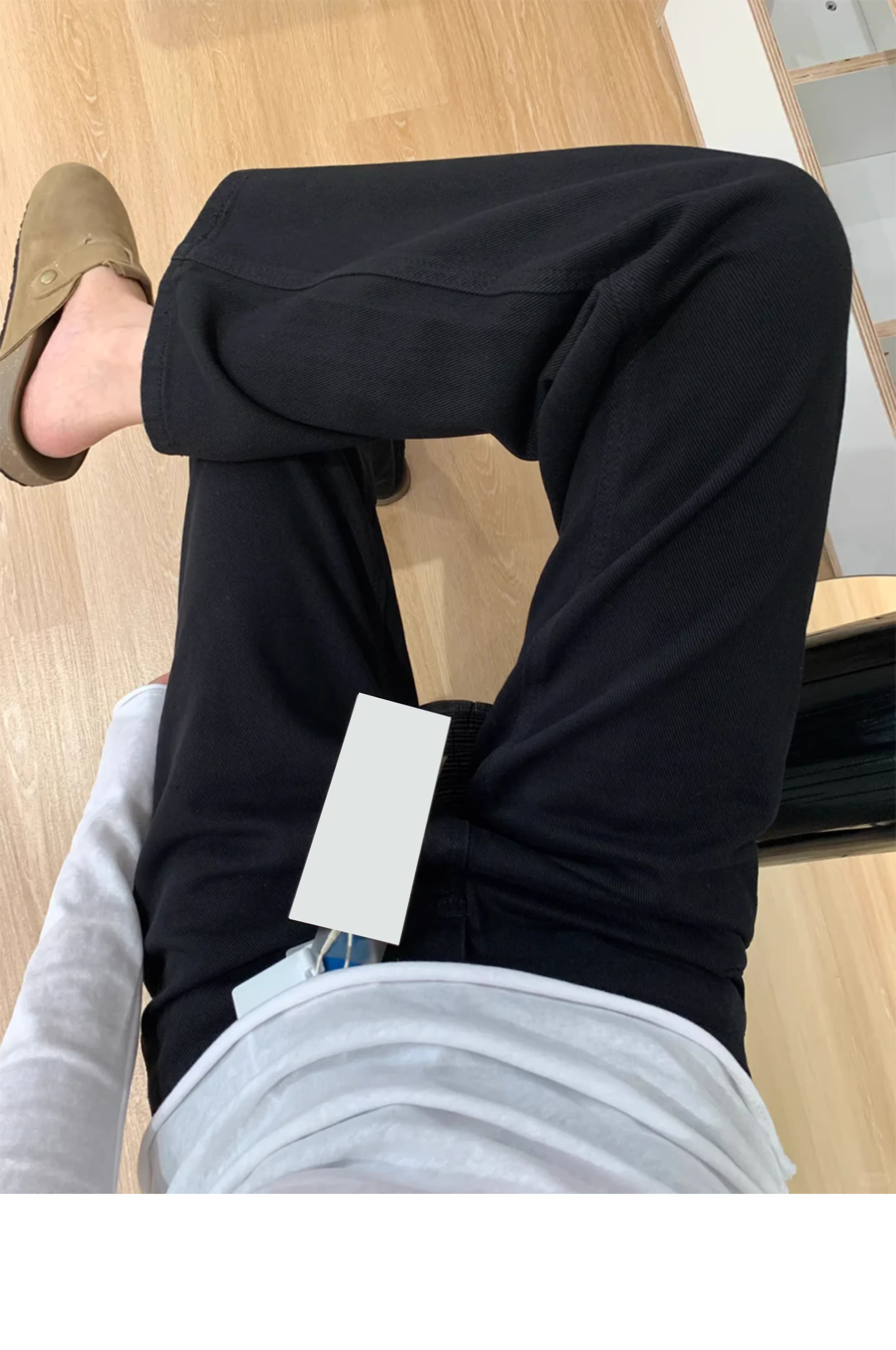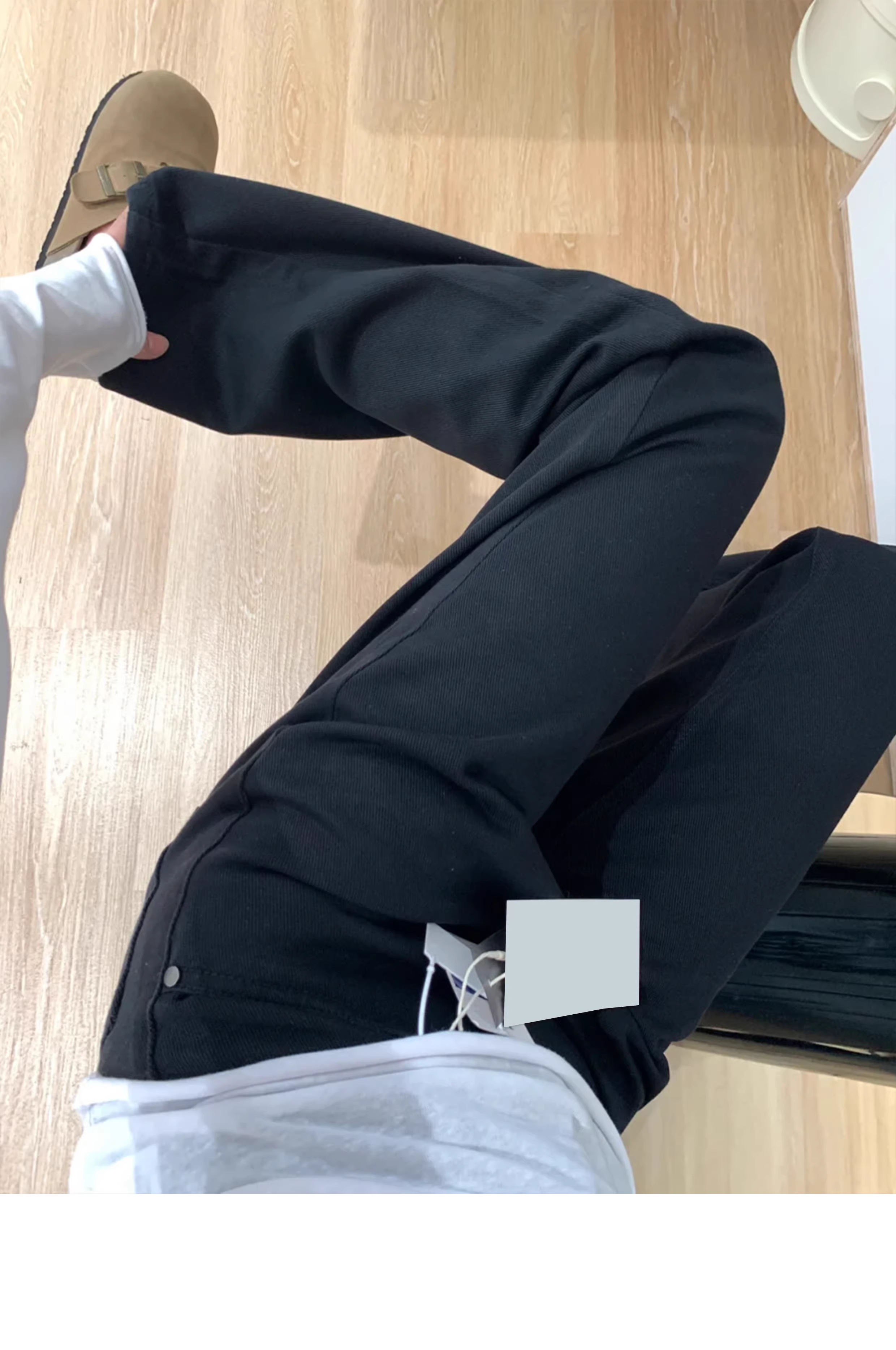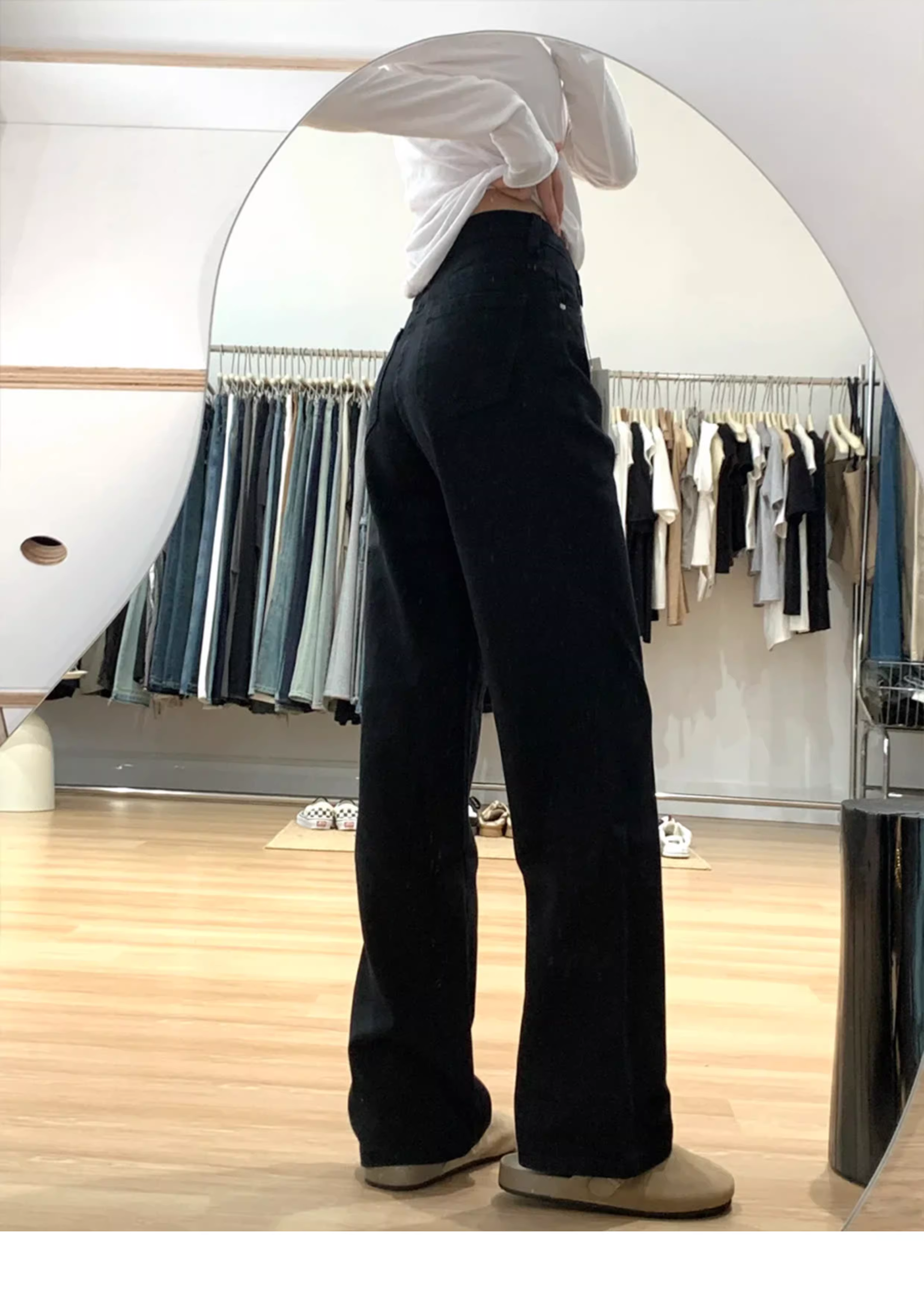 Quần jeans đen dáng rộng La Chapelle dành cho nữ, mẫu mới thu đông 2025, chất liệu lông cừu, dáng rộng, thẳng, size nhỏ nhắn