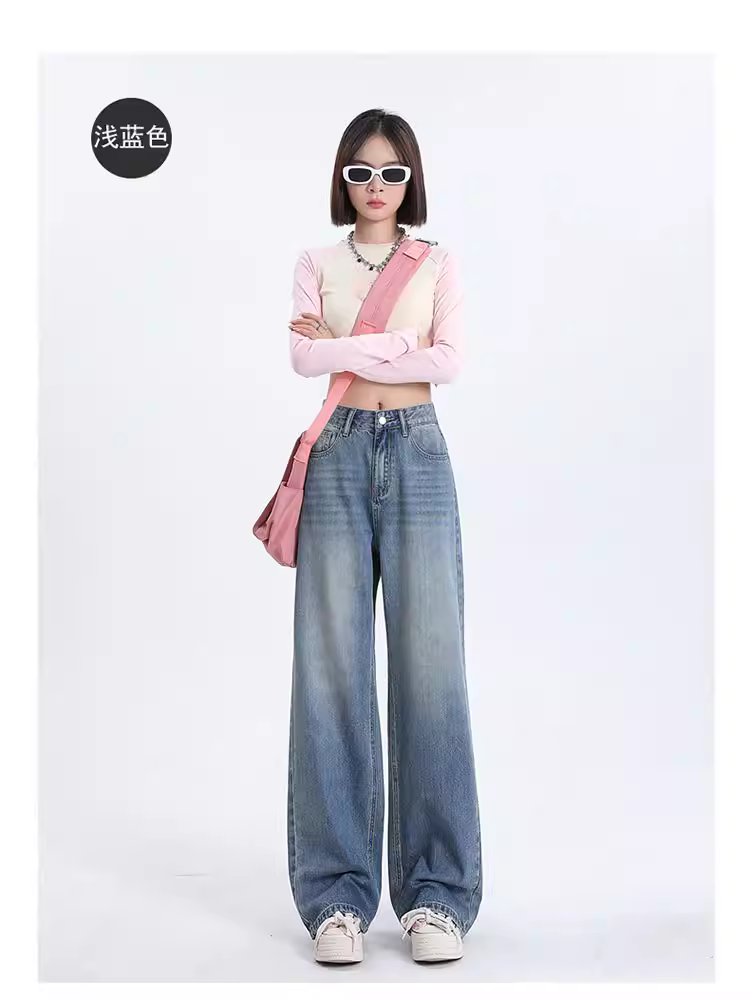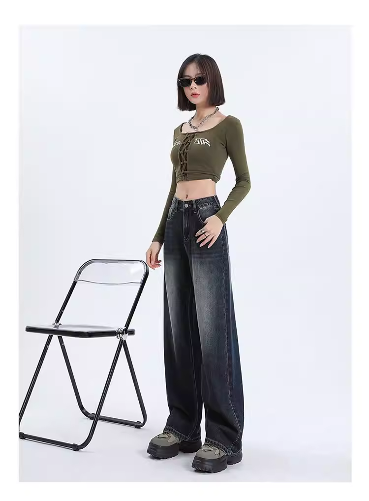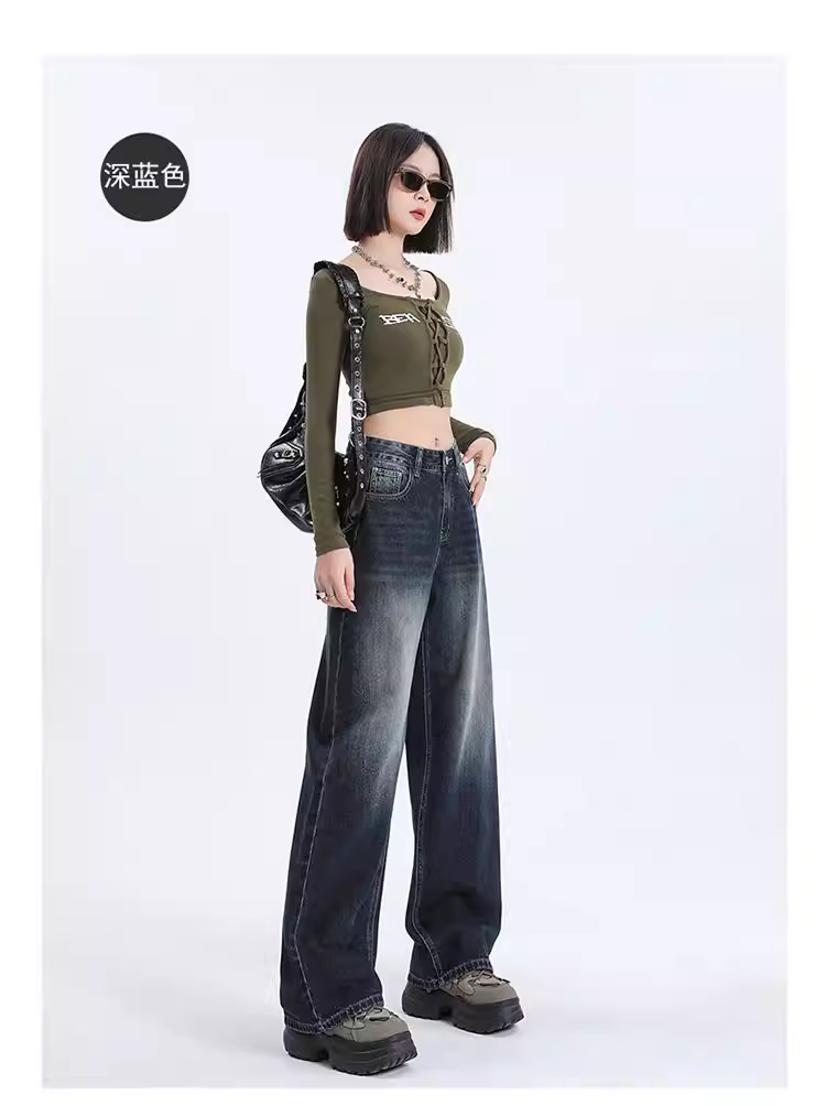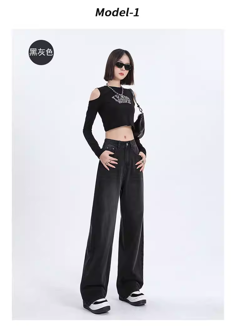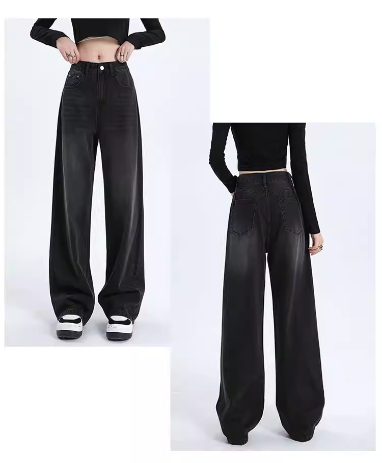 Quần jeans đen La Chapelle kiểu Mỹ cổ điển, ống rộng dành cho nữ, mẫu mới thu đông 2025, cạp cao, dáng thẳng rộng