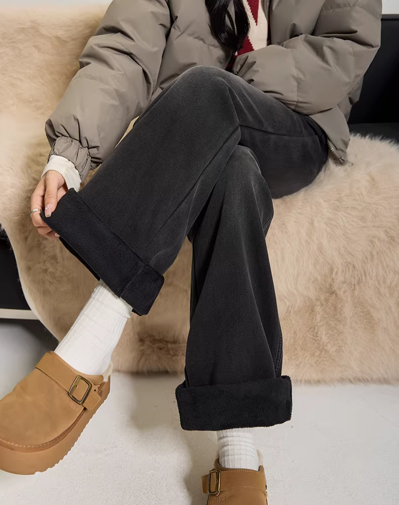 - Quần jeans đen La Chapelle kiểu Mỹ cổ điển, ống rộng dành cho nữ, mẫu mới thu đông 2025, cạp cao, dáng thẳng rộng