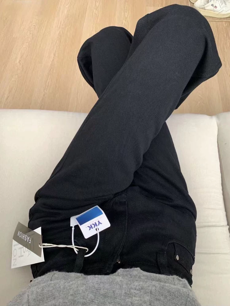 - Quần jeans đen ống đứng nữ, kiểu mới thu đông 2024, size lớn, cạp cao, co giãn, tôn dáng, quần ống rộng ôm dáng