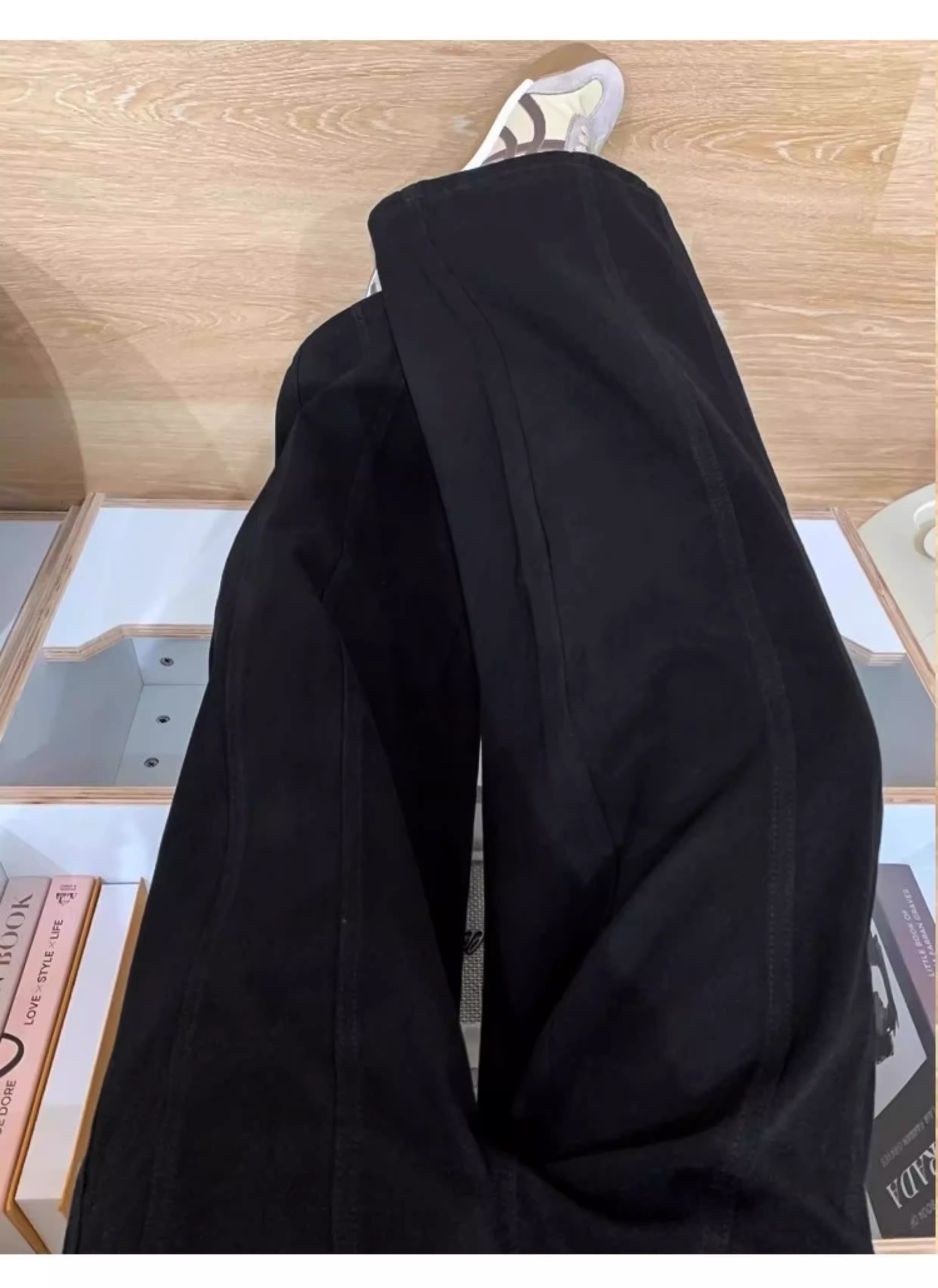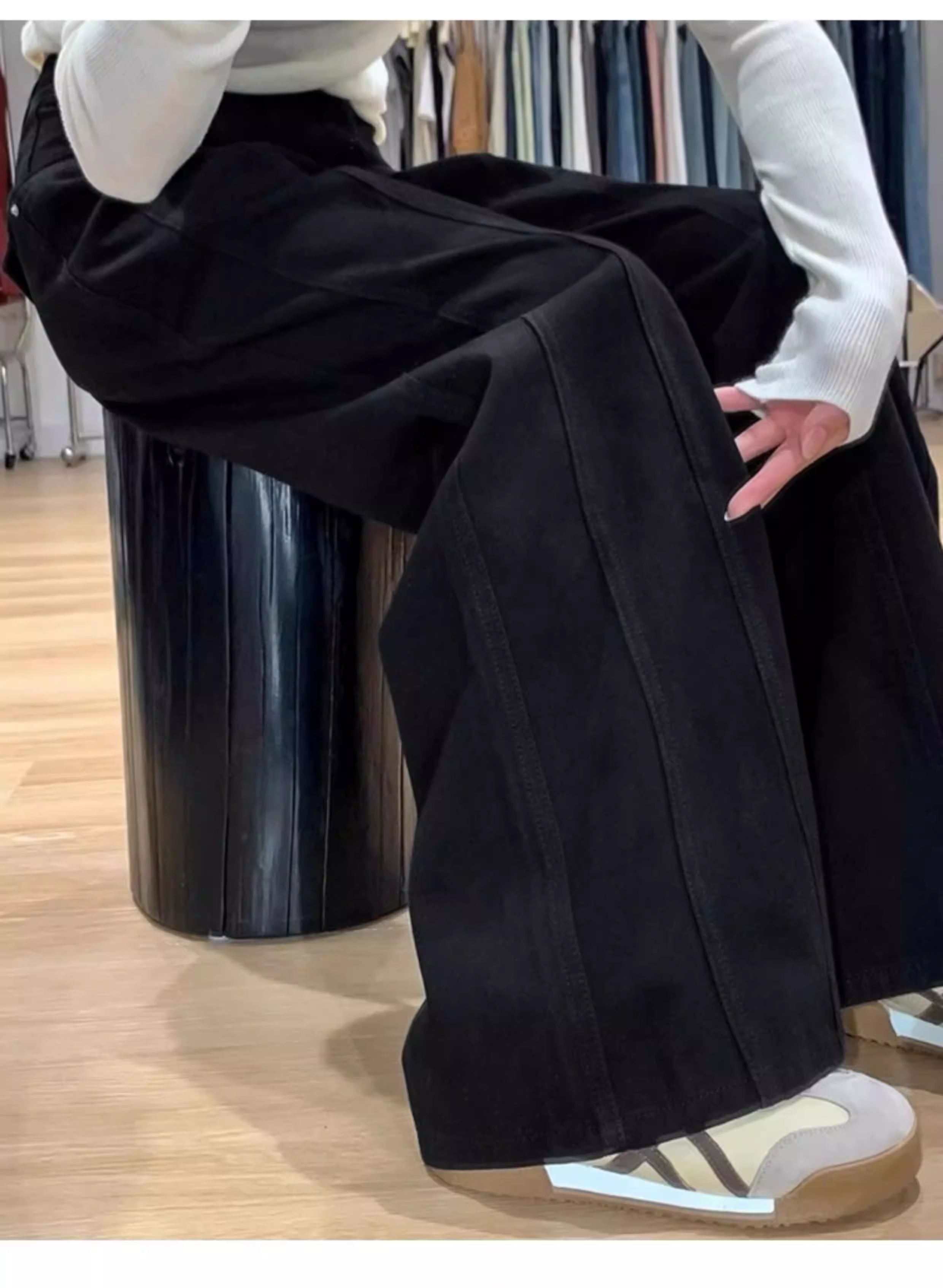 - Quần jeans đen rộng ống La Chapelle dành cho nữ, mẫu mới thu đông 2025, cạp cao, lót lông, dài chấm đất, dáng thẳng