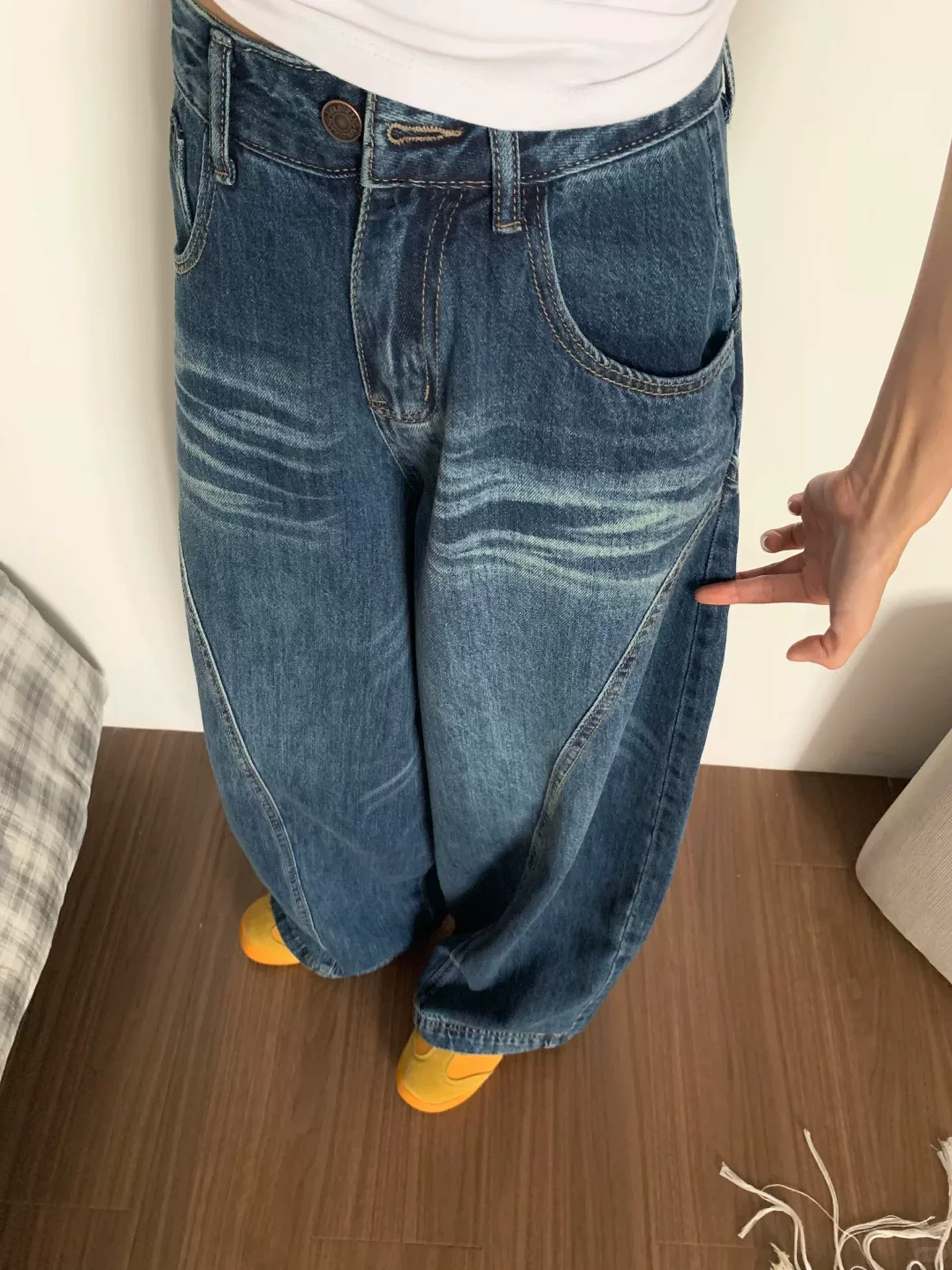 - Quần jeans kiểu Mỹ cổ điển dáng lửng dành cho nữ mùa thu 2025, size lớn, cạp cao, rộng rãi, suôn dáng, tôn dáng, ống rộng