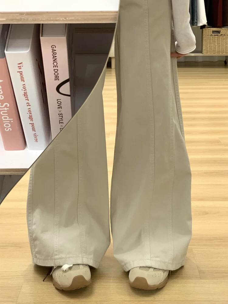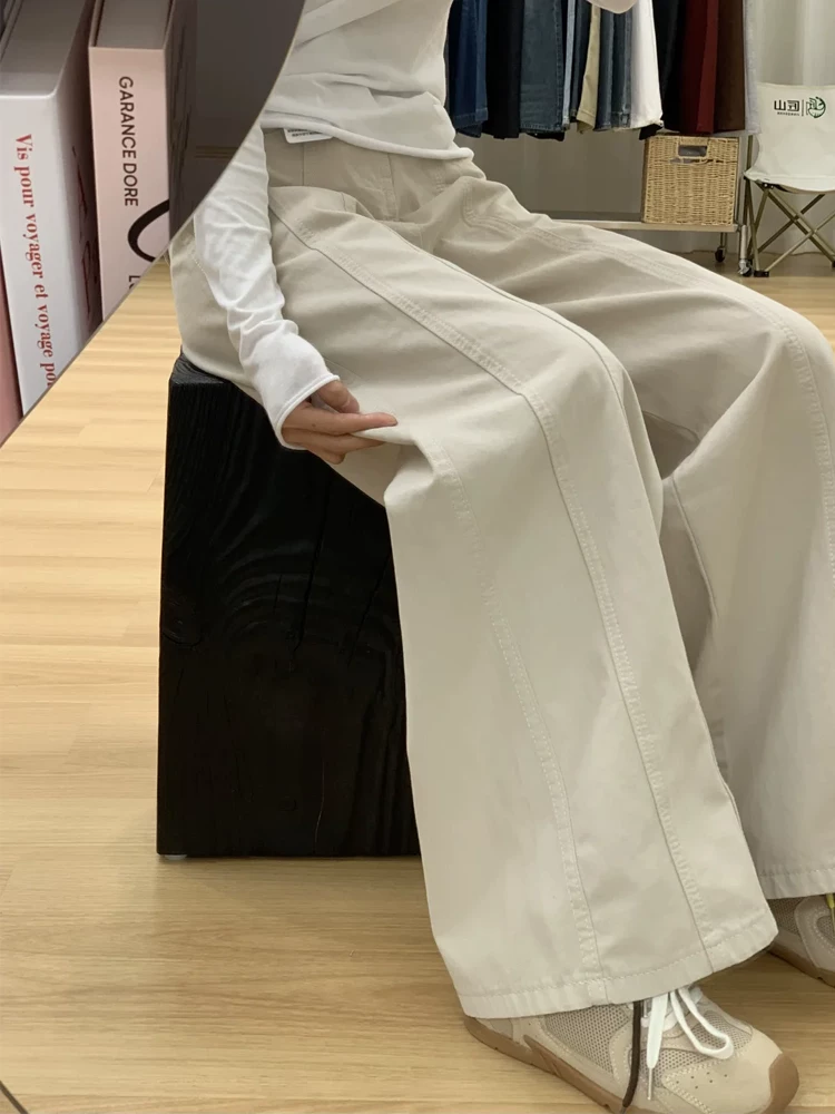 - Quần jeans kiểu Mỹ cổ điển dành cho nữ xuân 2025, size lớn, cạp cao, dáng rộng, tôn dáng, ống thẳng, ống rộng