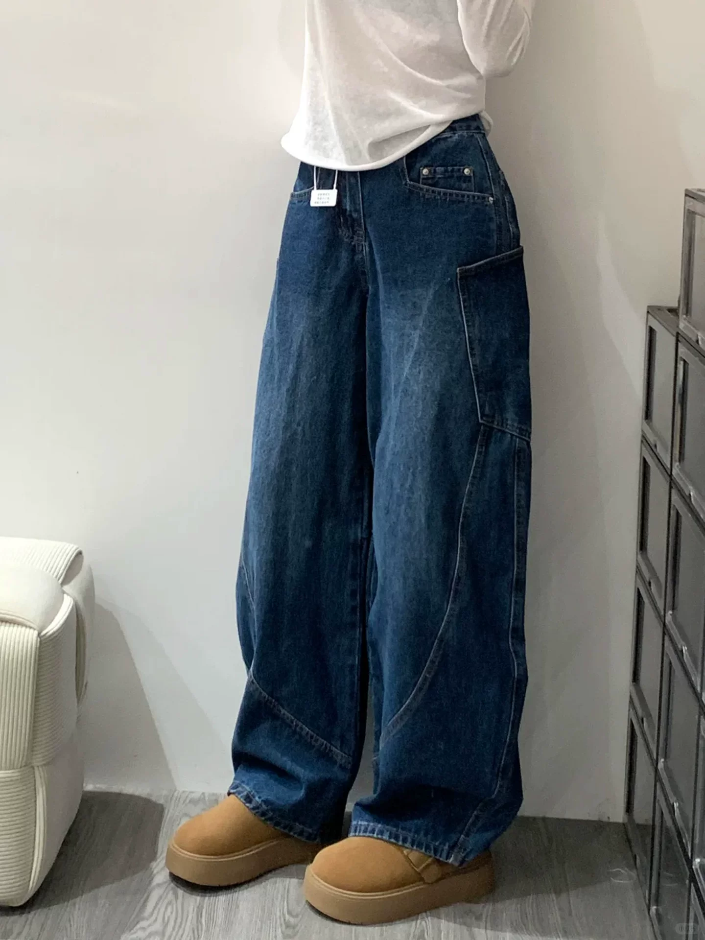 - Quần jeans kiểu Mỹ cổ điển mùa thu 2025, size lớn, cạp cao, dáng rộng, tôn dáng, ống rộng