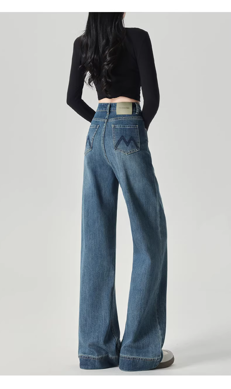 Quần jeans La Chapelle cạp cao ống rộng dành cho nữ, mẫu mới thu đông 2025, dáng suông, dài chấm đất