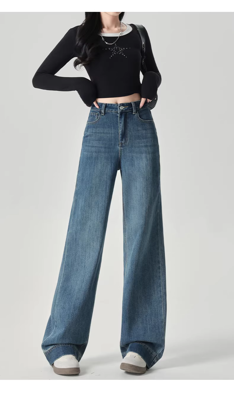 - Quần jeans La Chapelle cạp cao ống rộng dành cho nữ, mẫu mới thu đông 2025, dáng suông, dài chấm đất