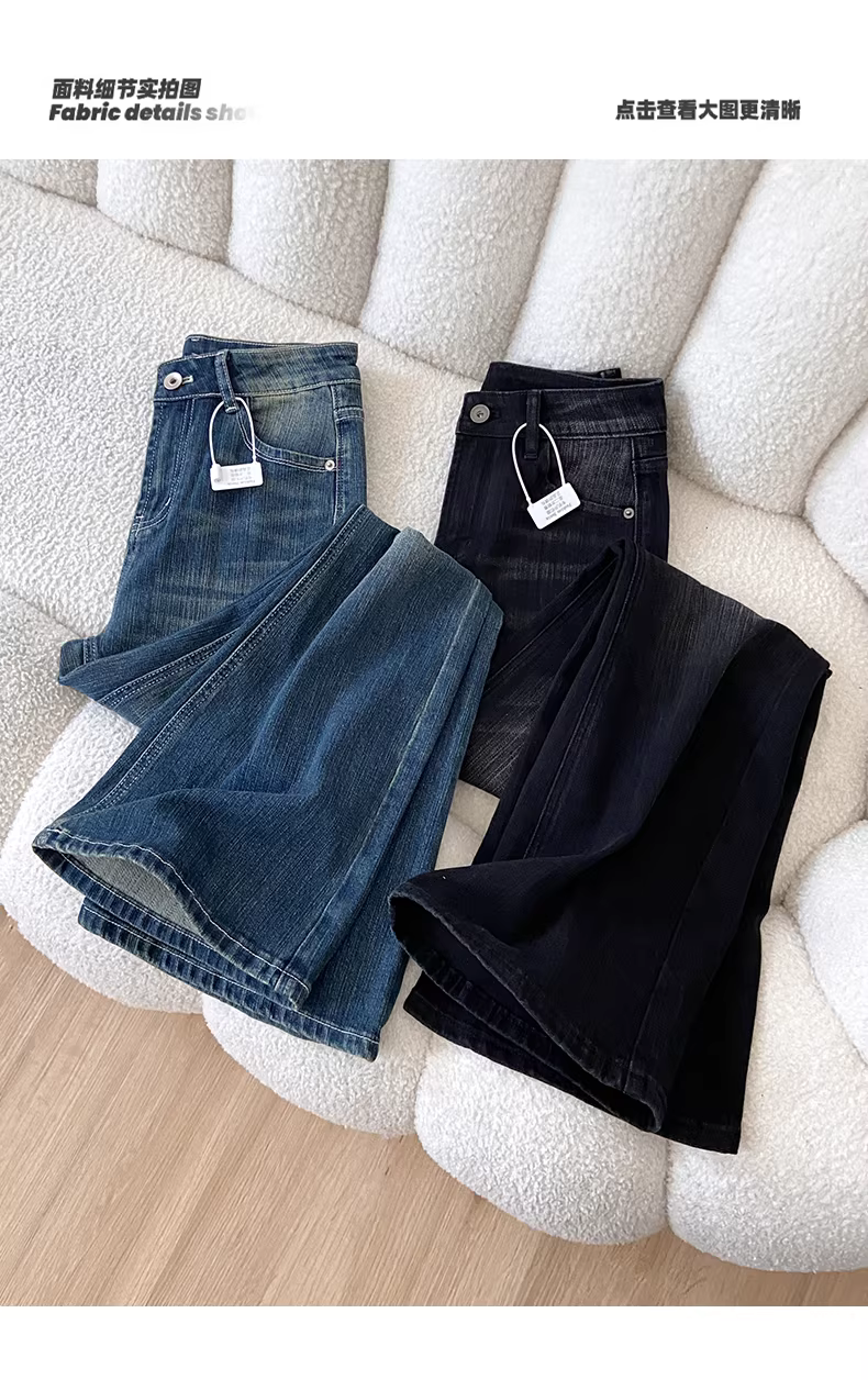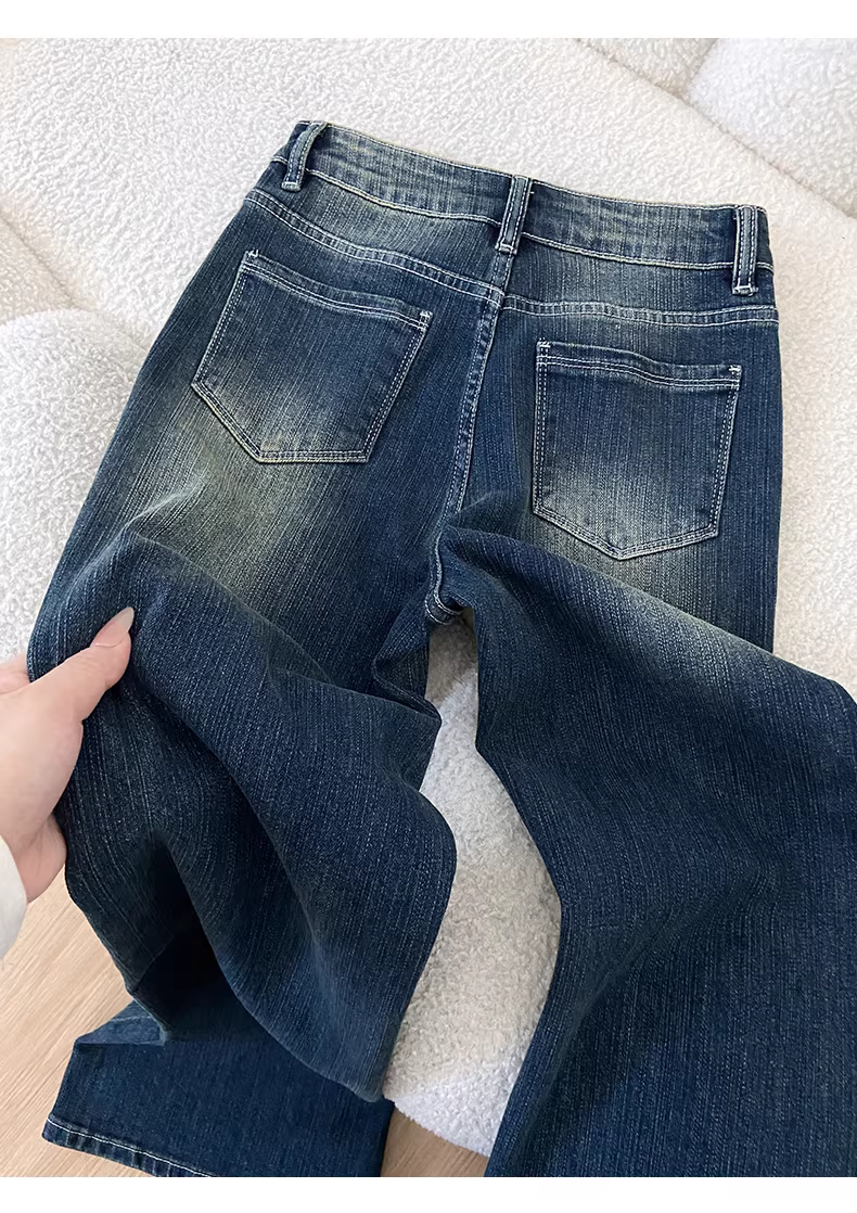 - Quần jeans La Chapelle dáng bootcut retro nữ 2025 mới thu đông, cạp cao, ôm dáng, ống loe