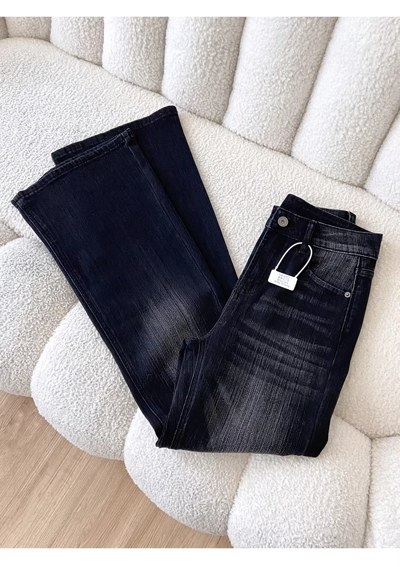 Quần jeans La Chapelle dáng loe co giãn dành cho nữ, mẫu mới thu đông 2025, cạp cao, ôm dáng, kiểu chuông, size nhỏ nhắn