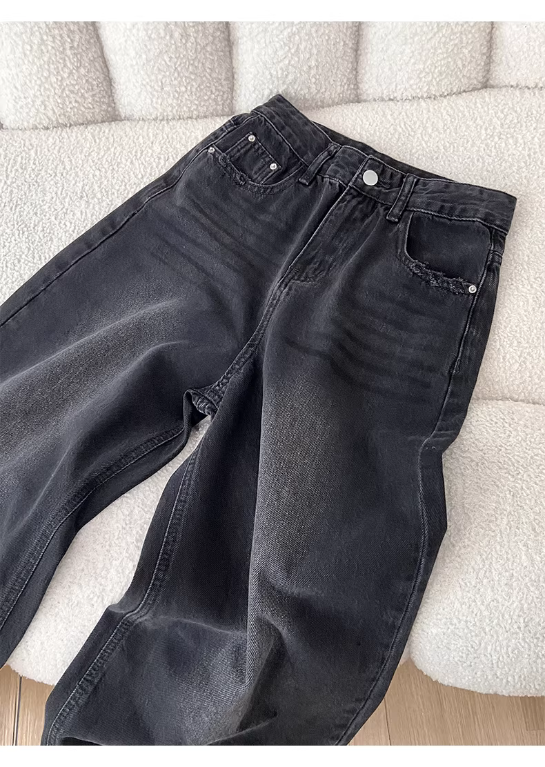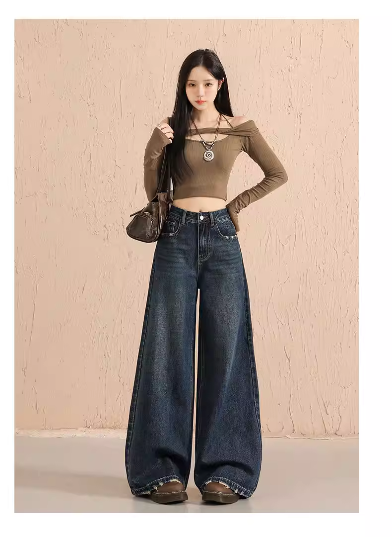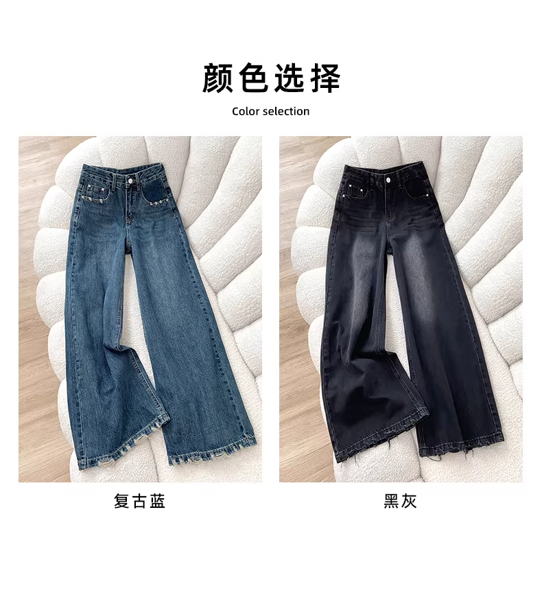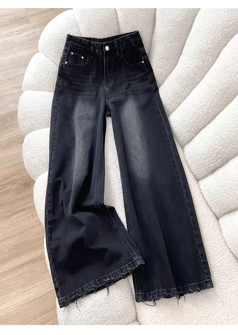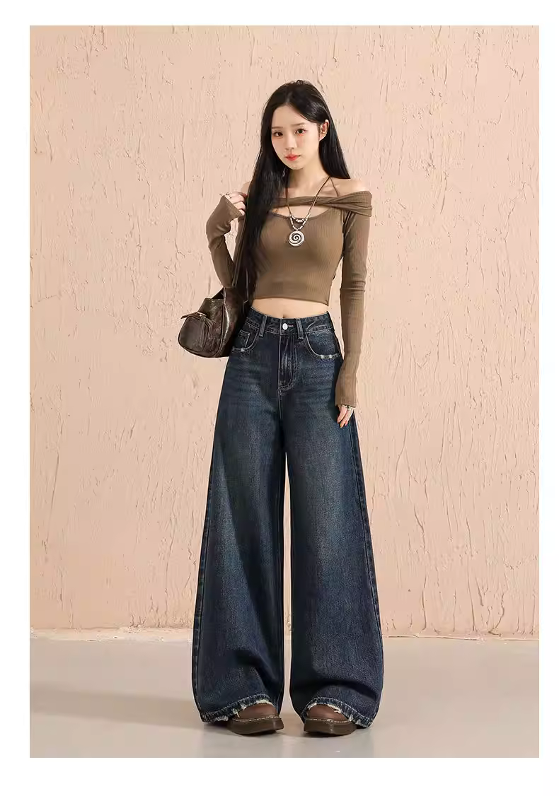 - Quần jeans La Chapelle dáng rộng, suông, cạp cao, viền xù dành cho nữ, mẫu mới thu đông 2025