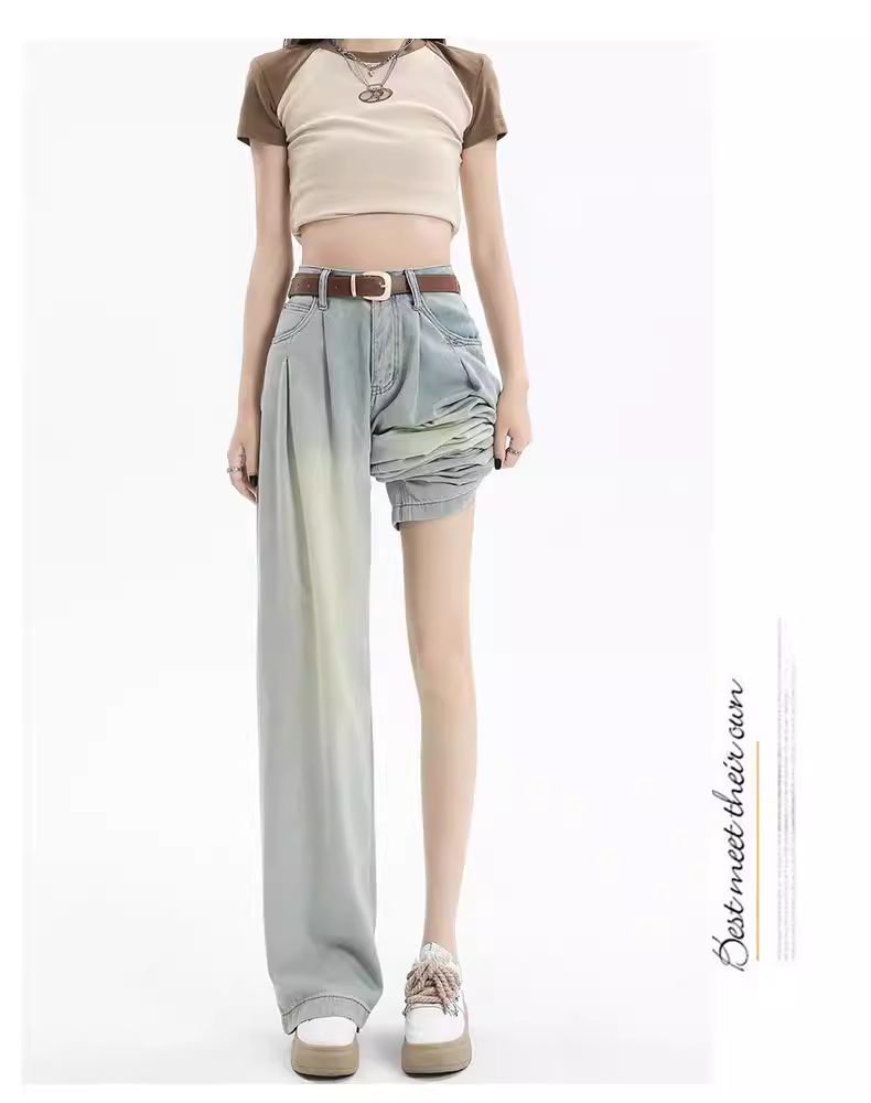 - Quần jeans La Chapelle màu sáng, cạp cao, dáng rộng, ống rộng dành cho nữ, mẫu mới thu đông 2025, kiểu dáng thẳng, dành cho người nhỏ nhắn
