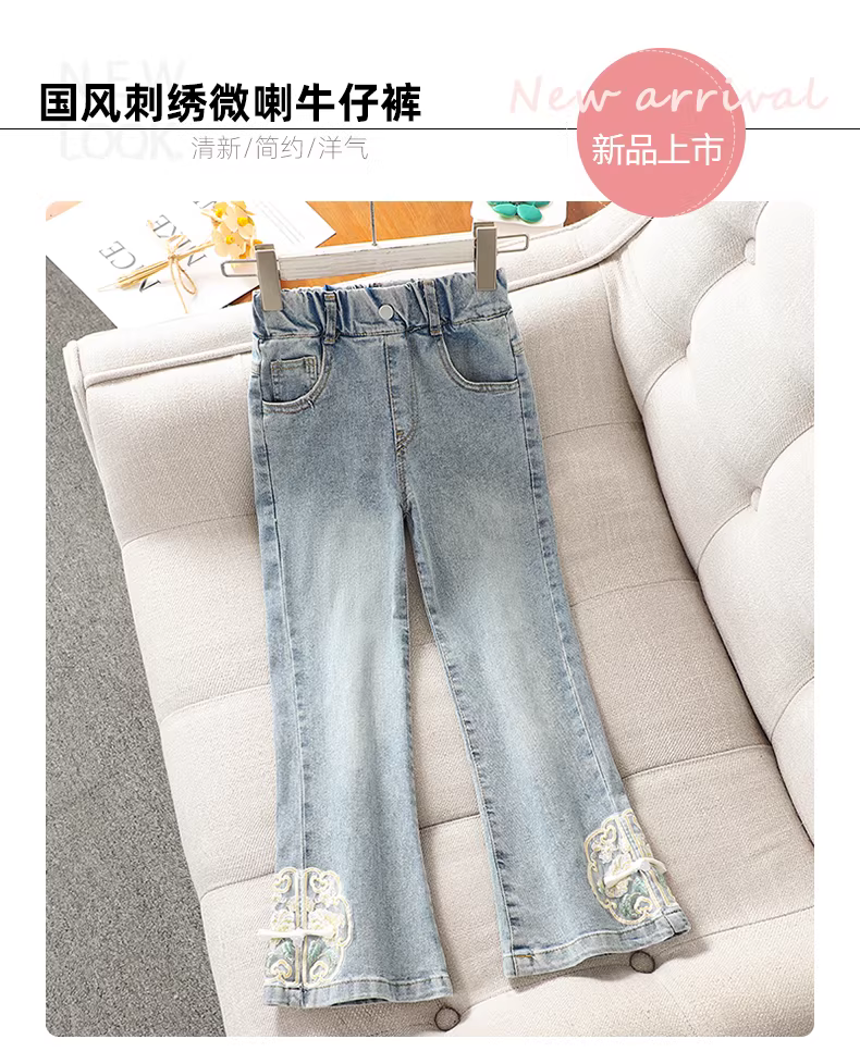 - Quần jeans loe nữ 2025 kiểu Trung Quốc mới, thêu họa tiết, thời trang, thoáng mát, dài dành cho trẻ lớn