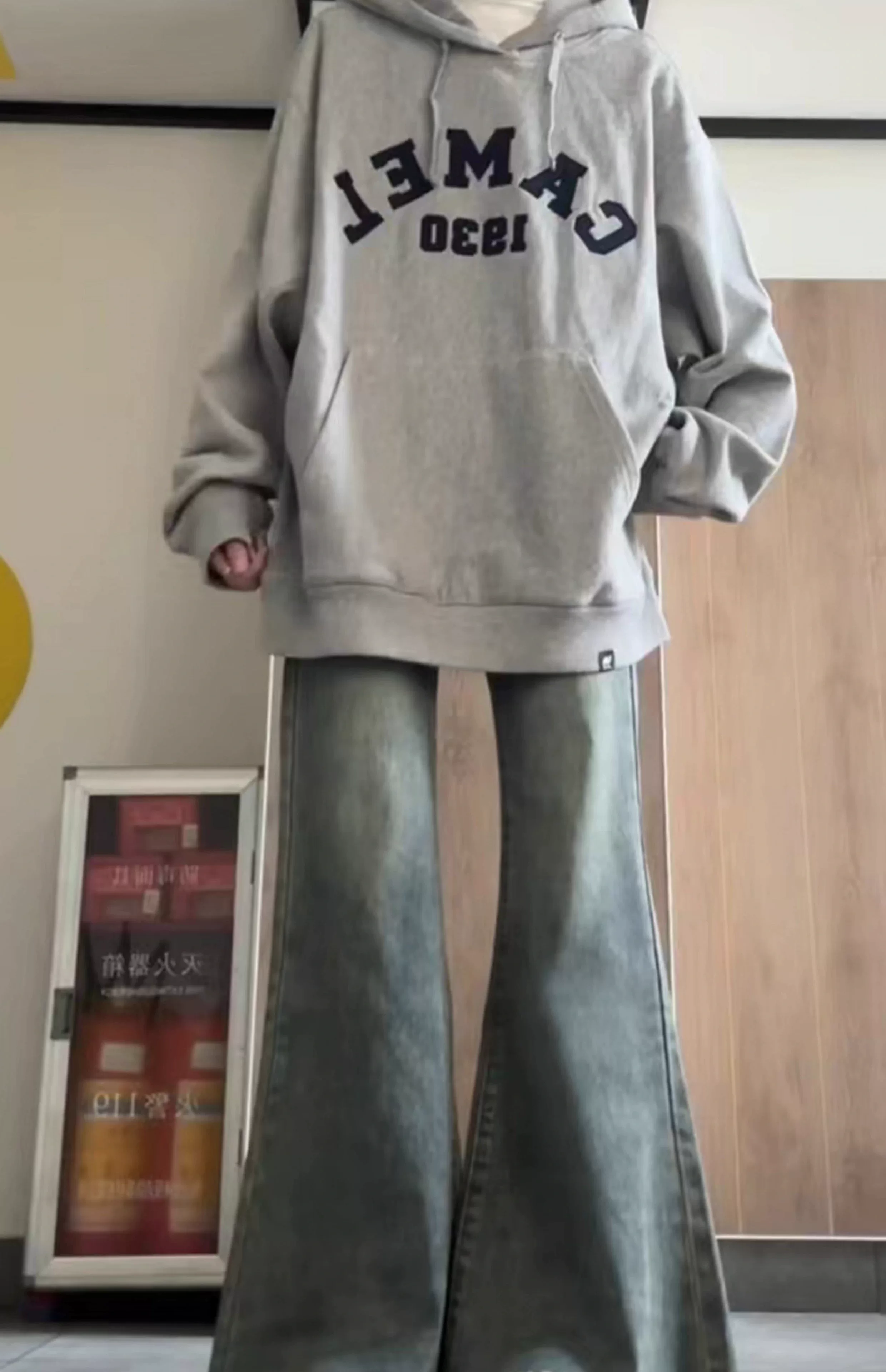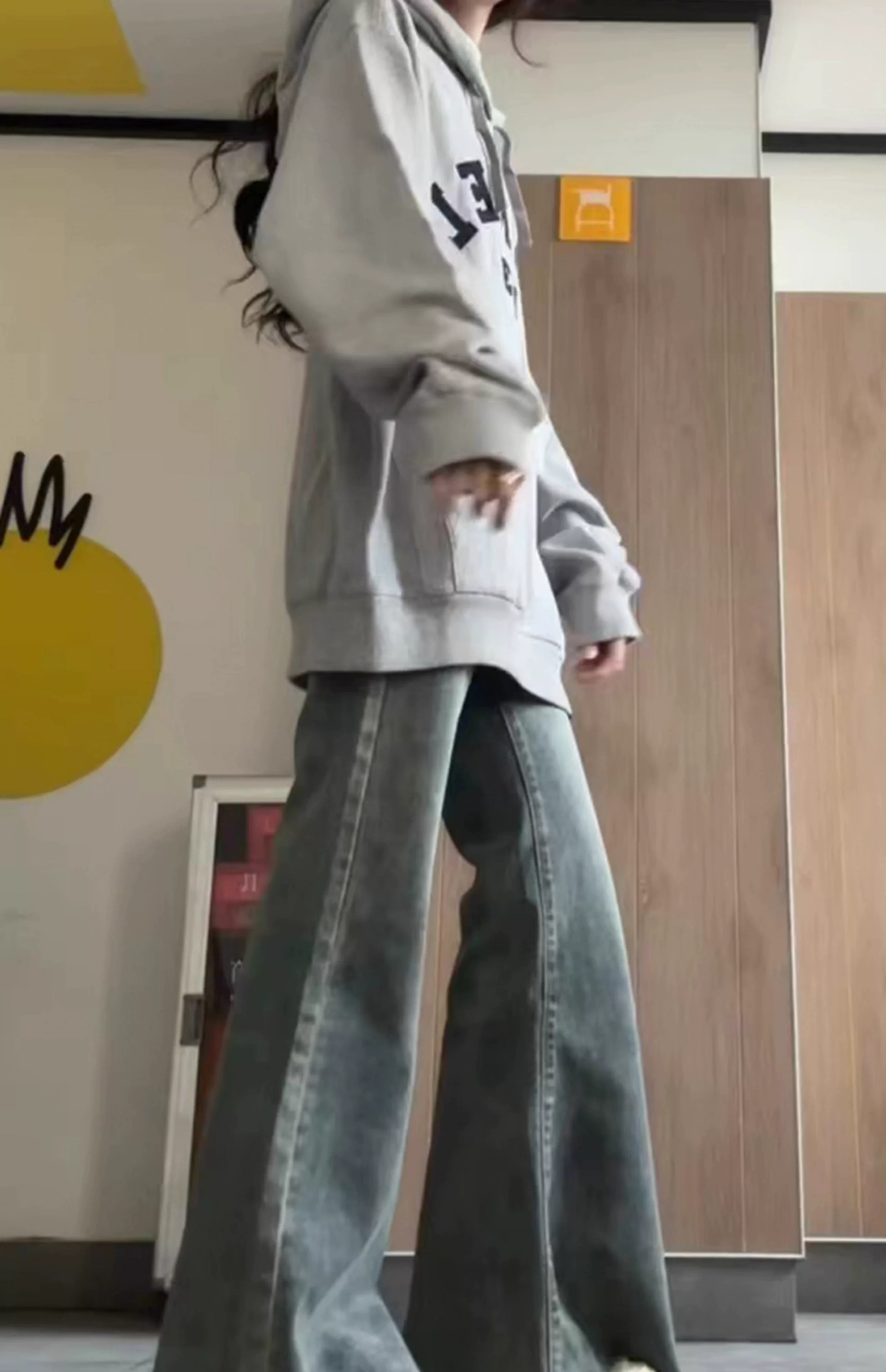 - Quần jeans loe nữ, xuân 2025, size lớn, cạp cao, dáng rộng, che hông, tôn dáng, ống chuông, dài chạm sàn