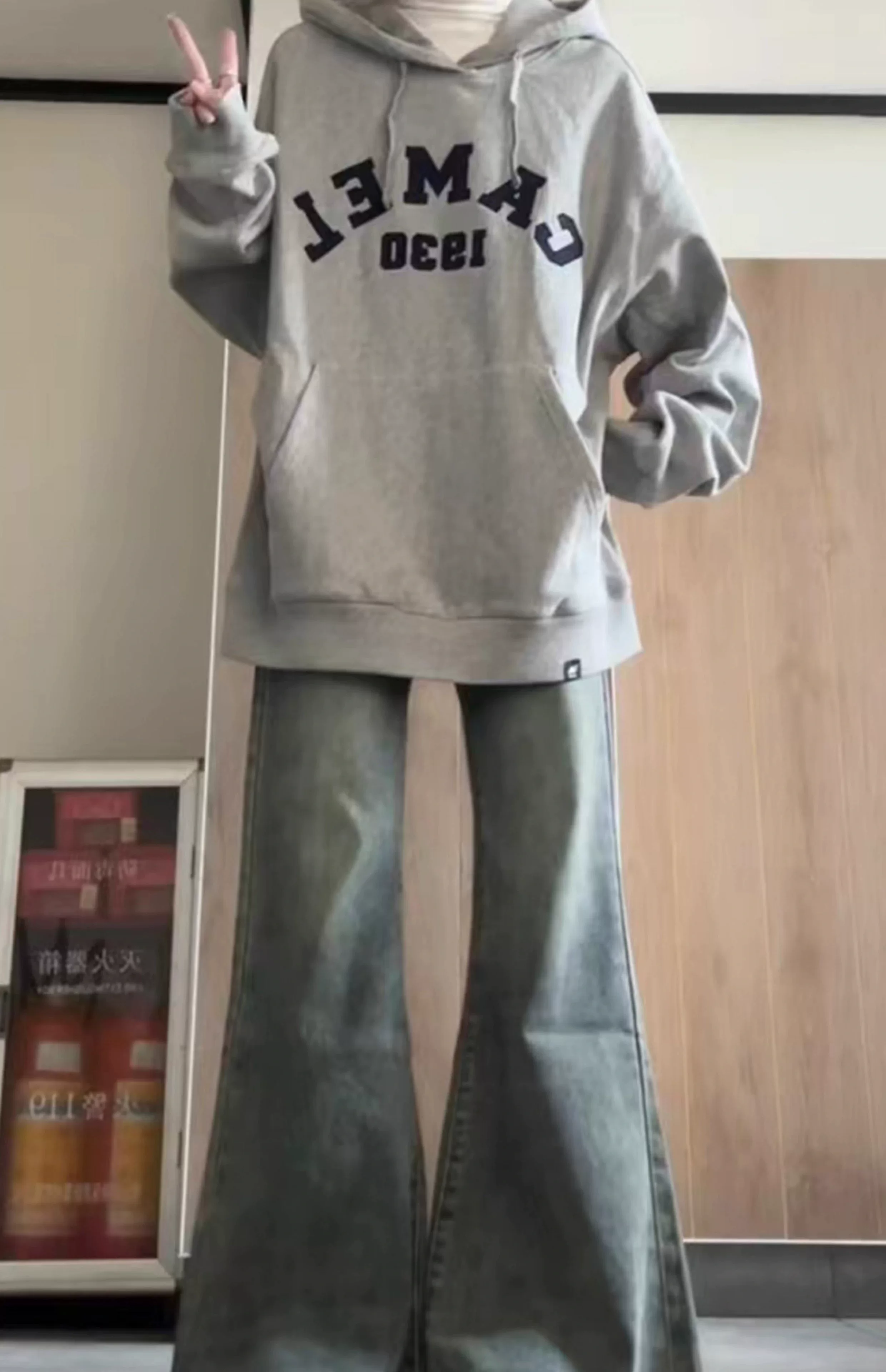 Quần jeans loe nữ, xuân 2025, size lớn, cạp cao, dáng rộng, che hông, tôn dáng, ống chuông, dài chạm sàn