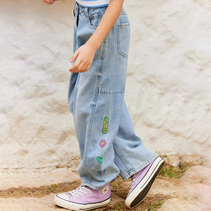 - Quần jeans nữ bé gái thu đông 2025 kiểu dáng thẳng, thời trang trẻ em, quần dài xuông rộng cho bé lớn