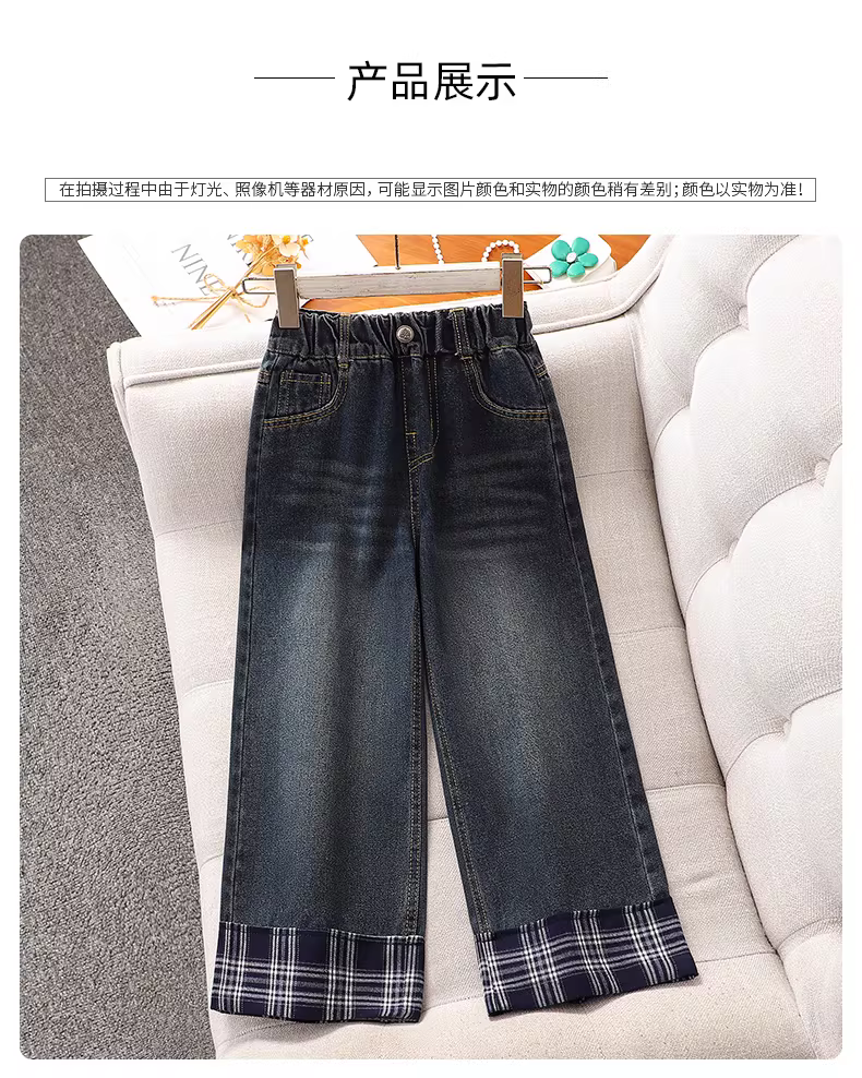 - Quần jeans nữ bé gái xuân thu 2025 kiểu mới, quần ống rộng suông, quần trẻ em dáng thẳng tôn dáng, quần thường ngày