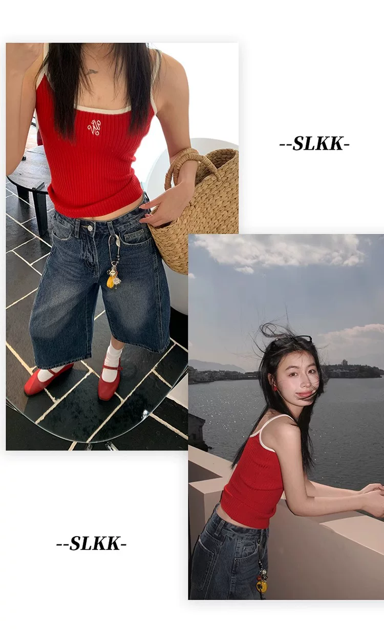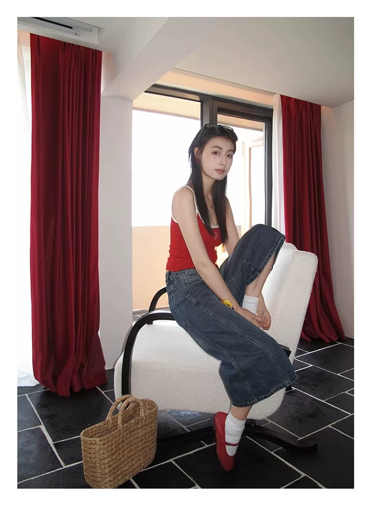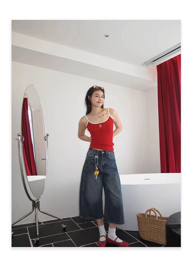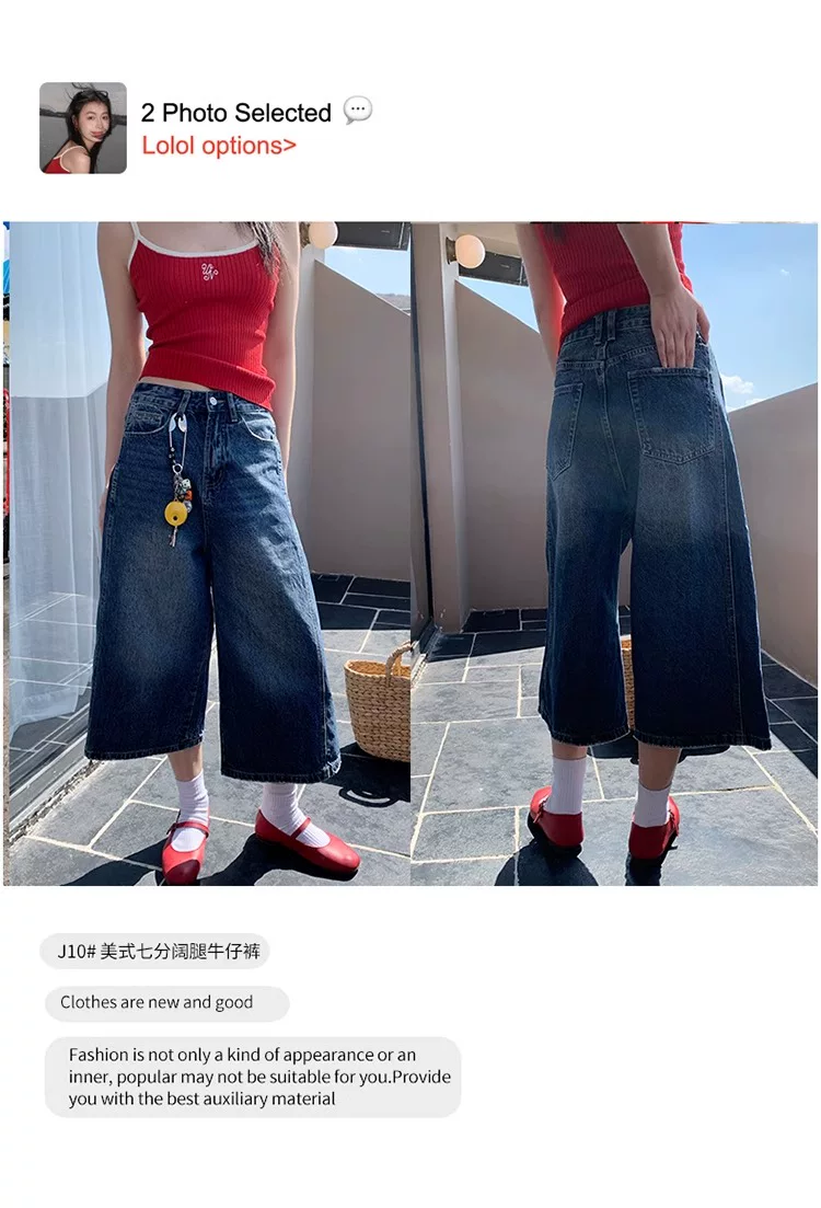 - Quần jeans nữ kiểu Mỹ cổ điển, dáng lửng, mùa hè 2025, size lớn, cạp cao, rộng rãi, tôn dáng, ống rộng