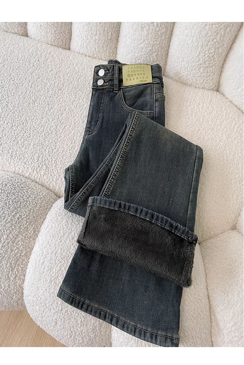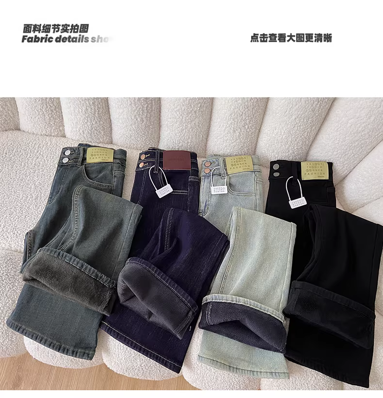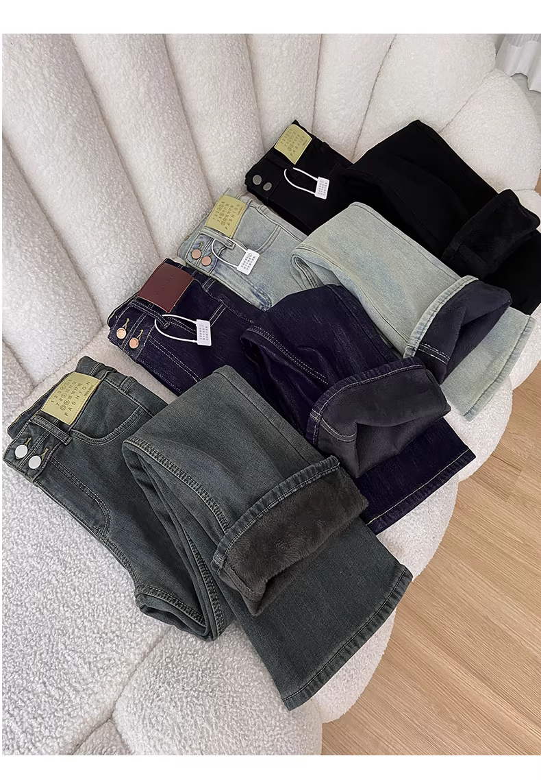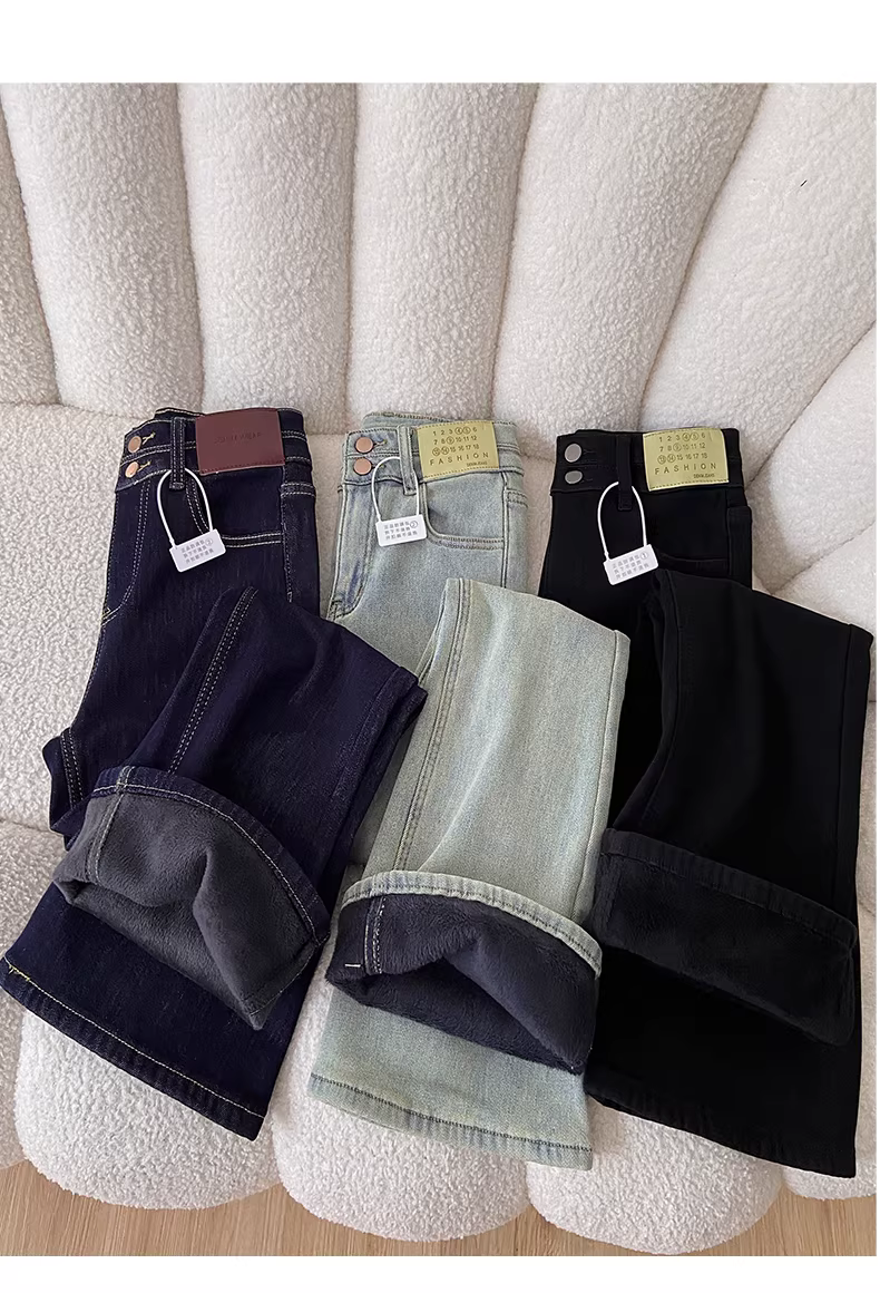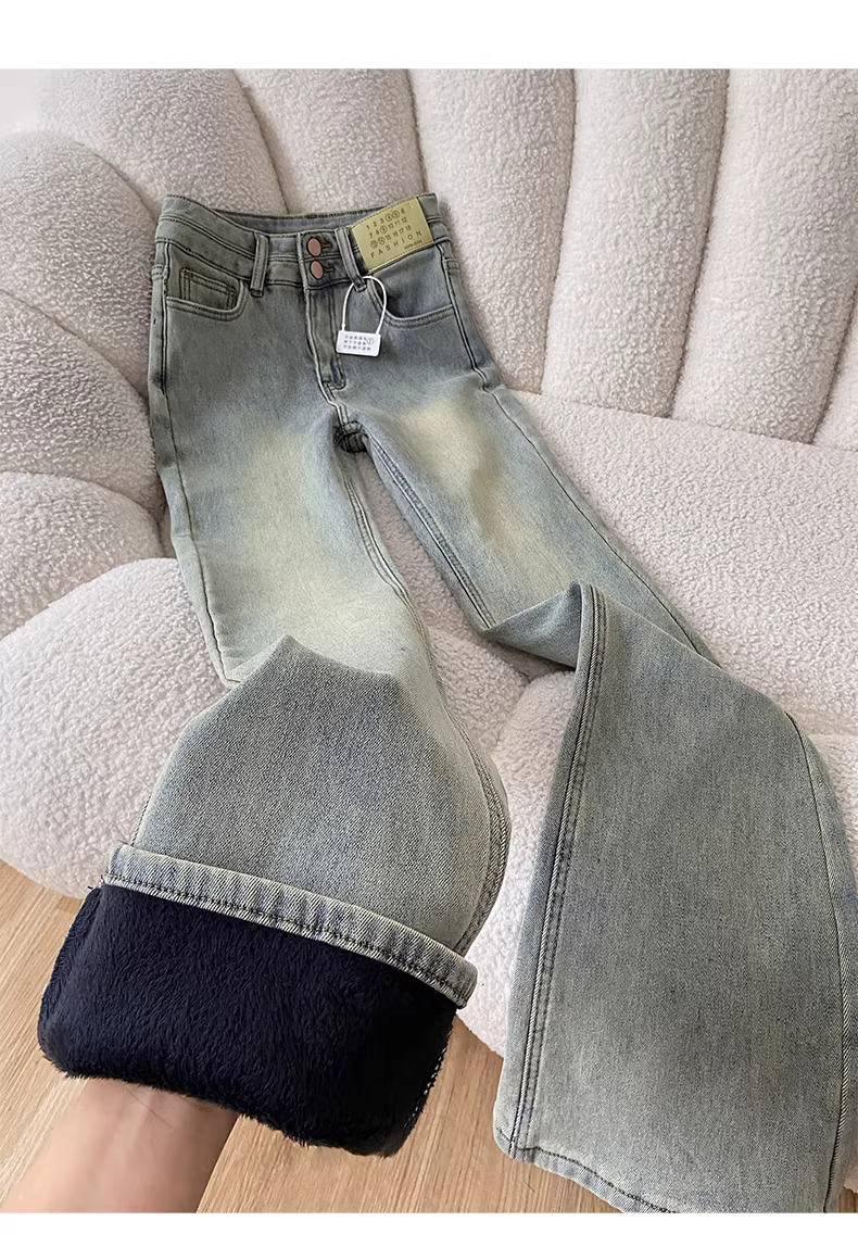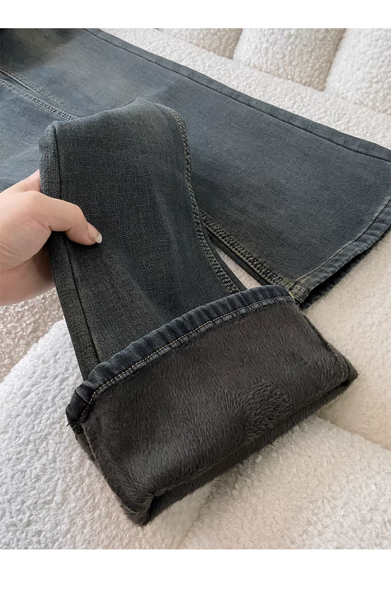 - Quần jeans nữ La Chapelle cạp cao, ống loe, lót lông cừu đen, kiểu mới thu đông 2025, dáng ôm nhỏ nhắn, kiểu chuông.