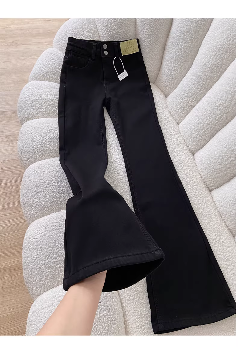 Quần jeans nữ La Chapelle cạp cao, ống loe, lót lông cừu đen, kiểu mới thu đông 2025, dáng ôm nhỏ nhắn, kiểu chuông.