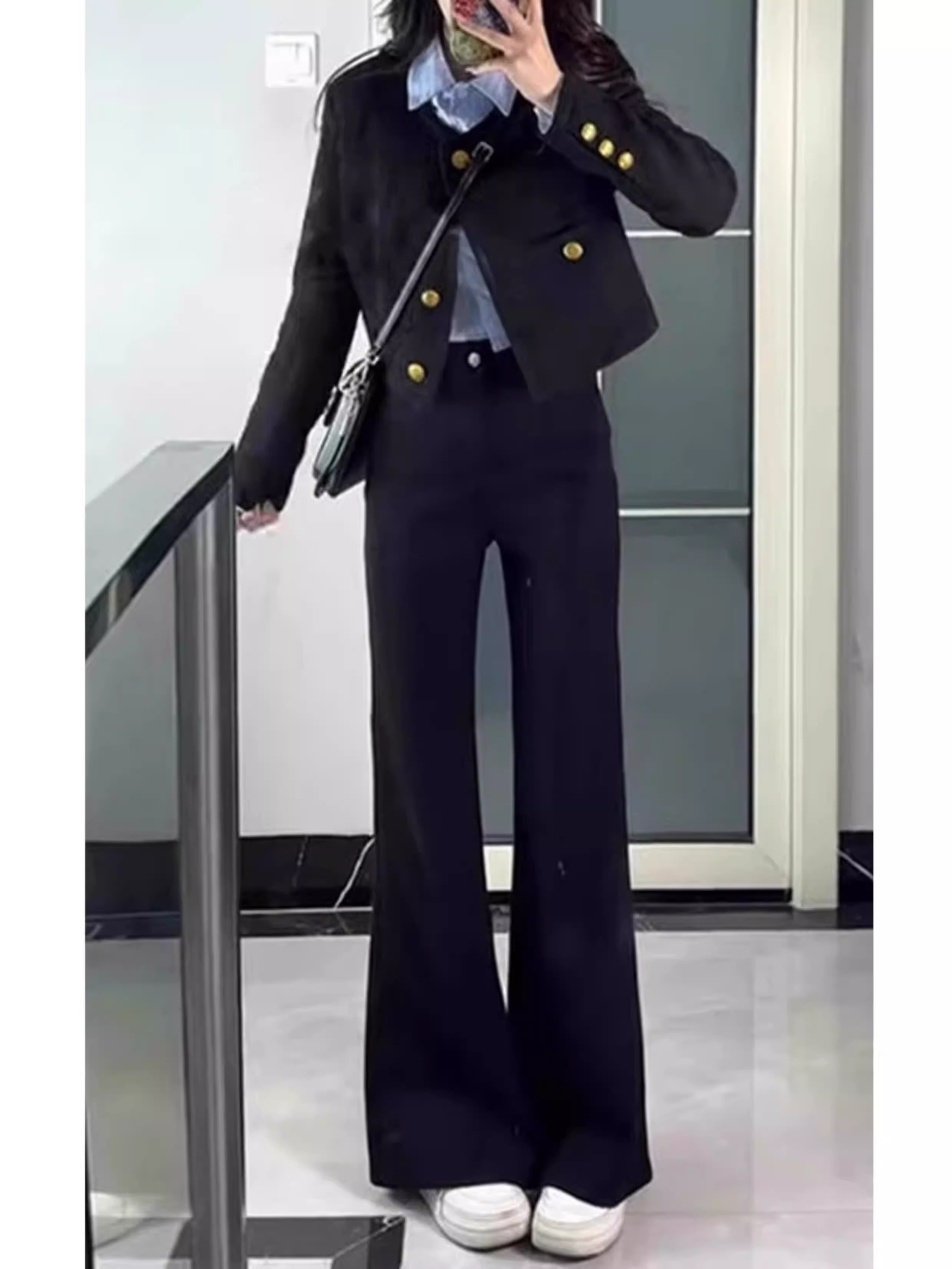 - Quần jeans nữ La Chapelle dáng ôm, lót lông cừu đen, kiểu dáng loe, mùa thu đông 2025, cạp cao, chất liệu co giãn.