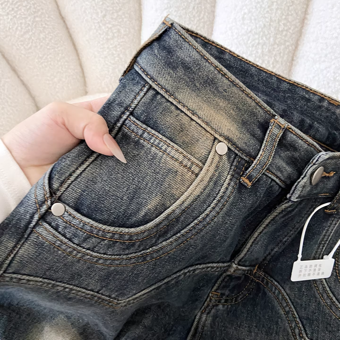 - Quần jeans nữ La Chapelle kiểu dáng retro, lót lông dày, ống loe, mùa thu đông 2025, cạp cao, ôm dáng, kiểu chuông
