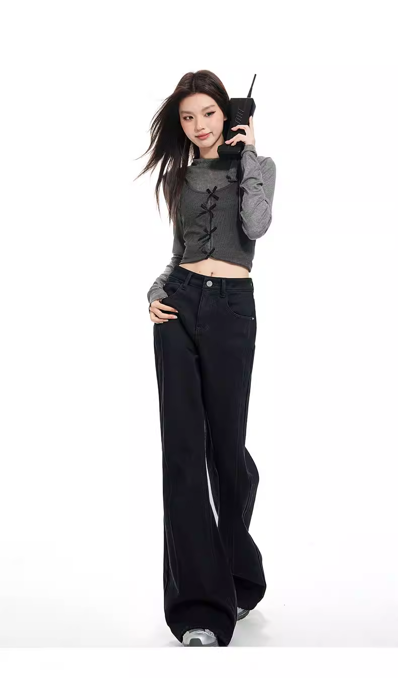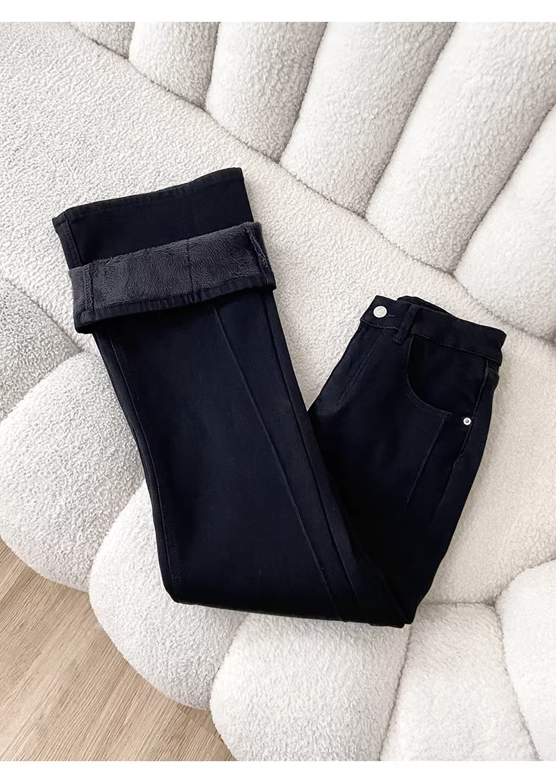 - Quần jeans nữ La Chapelle lót lông cừu dày, dáng loe, cao cấp, mùa thu đông 2025, cạp cao, ôm dáng, ống chuông