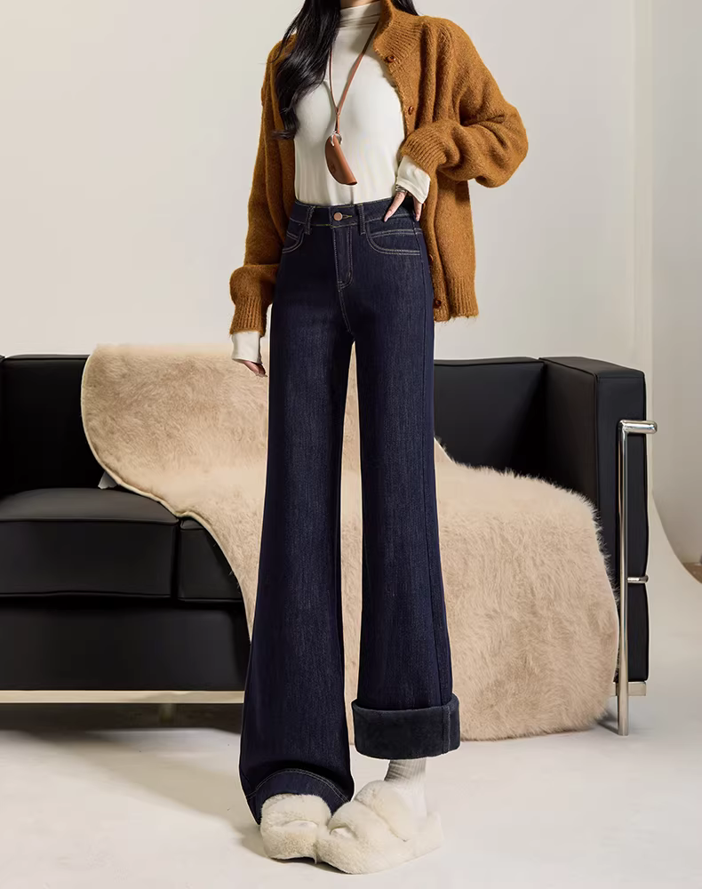 - Quần jeans nữ La Chapelle lót lông cừu dày, dáng loe, cao eo, không bó sát, mẫu mới thu đông 2025