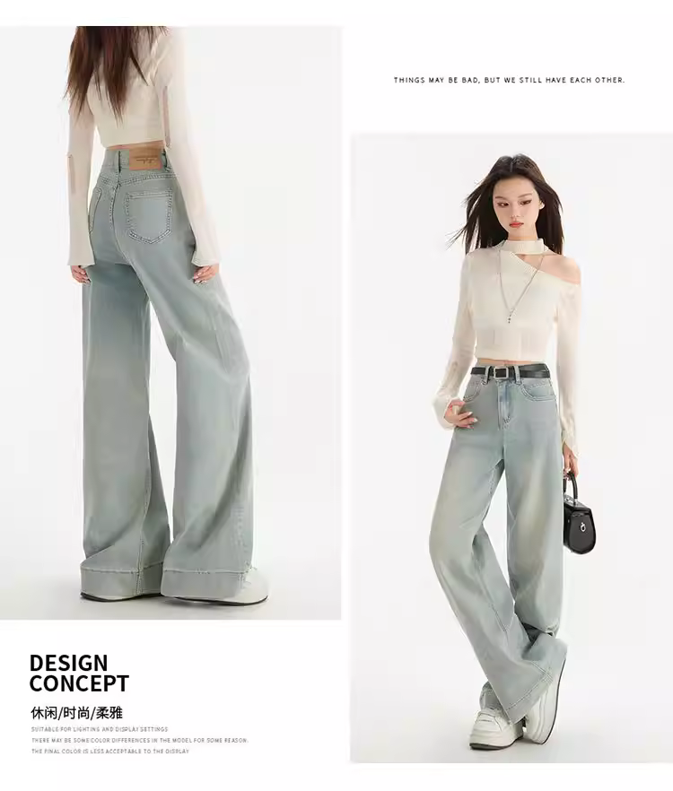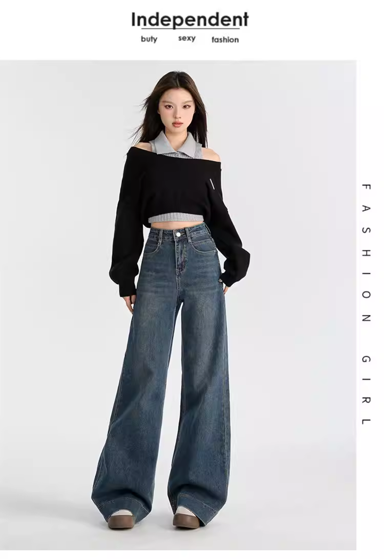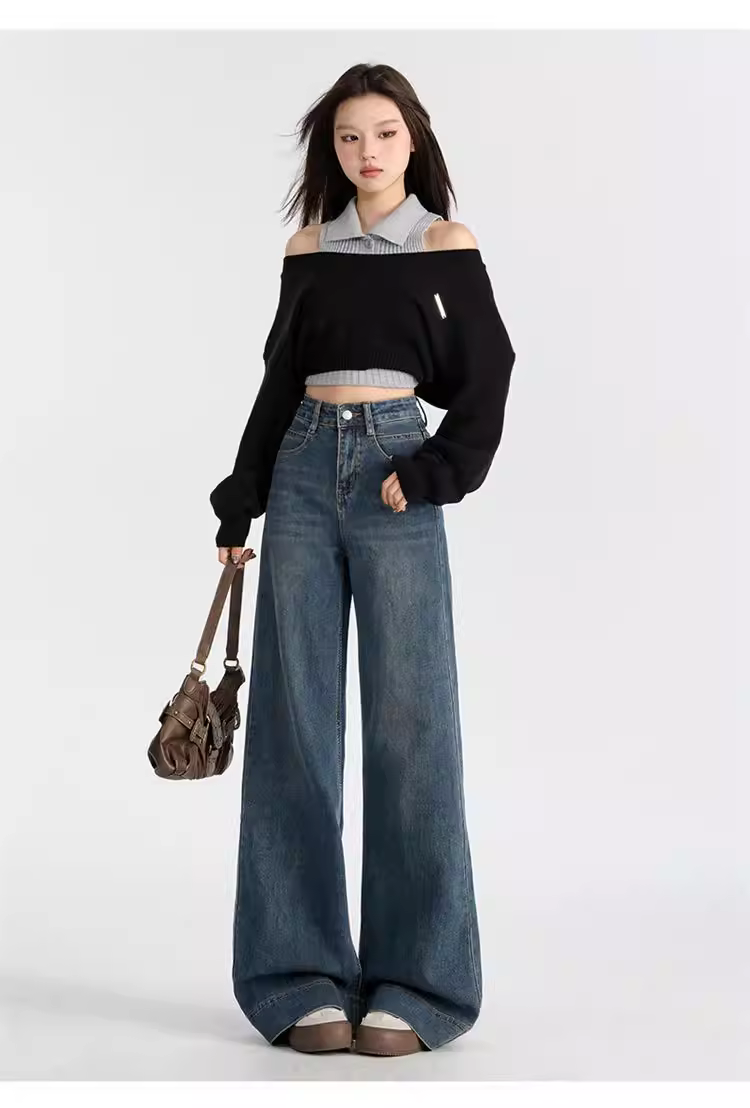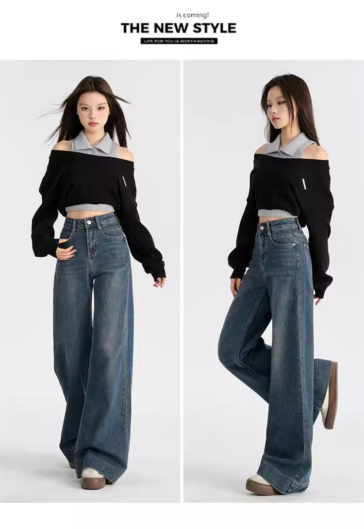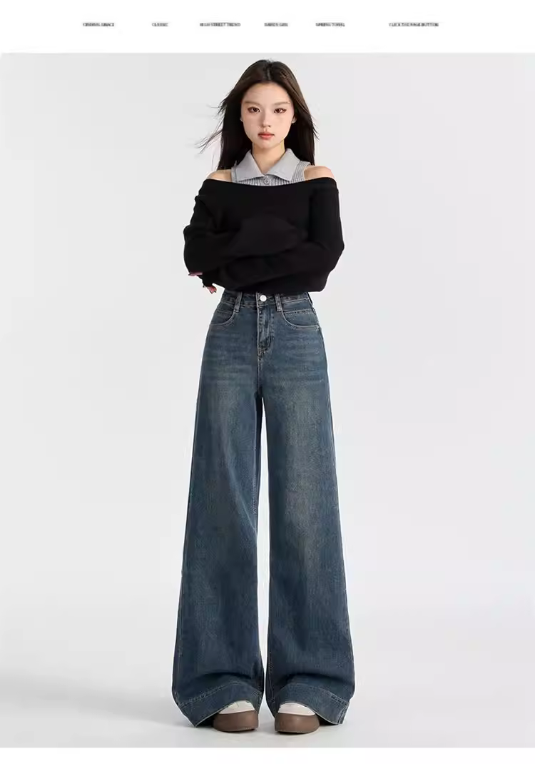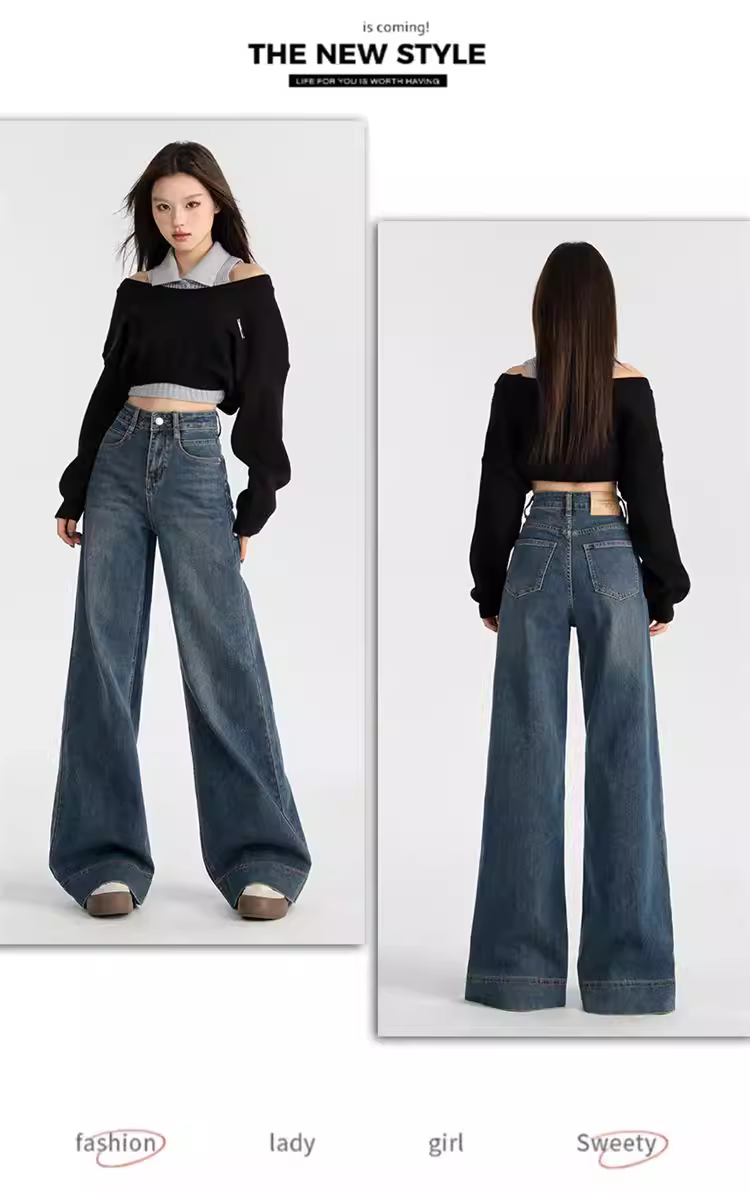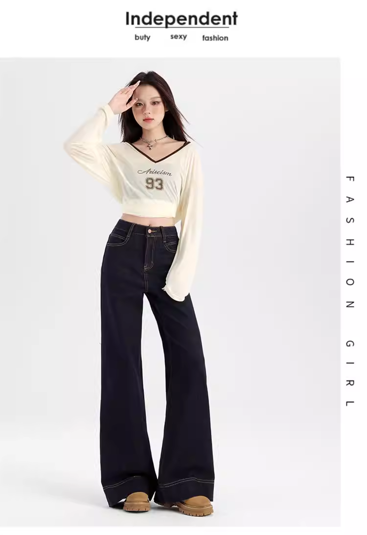 Quần jeans nữ La Chapelle lót lông cừu dày, dáng loe, cao eo, không bó sát, mẫu mới thu đông 2025