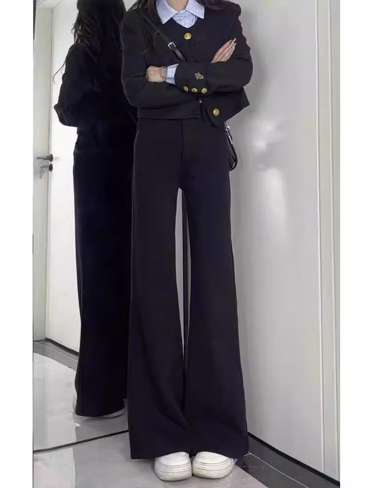 - Quần jeans nữ La Chapelle lót lông cừu đen dày dặn, dáng loe, kiểu mới thu đông 2025, cạp cao, ôm dáng, ống chuông