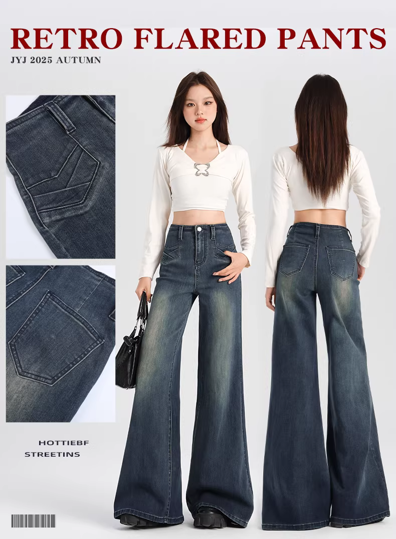 - Quần jeans nữ La Chapelle lót lông dày, dáng loe, kiểu mới thu đông 2025, ôm dáng, không bó sát, kiểu chuông