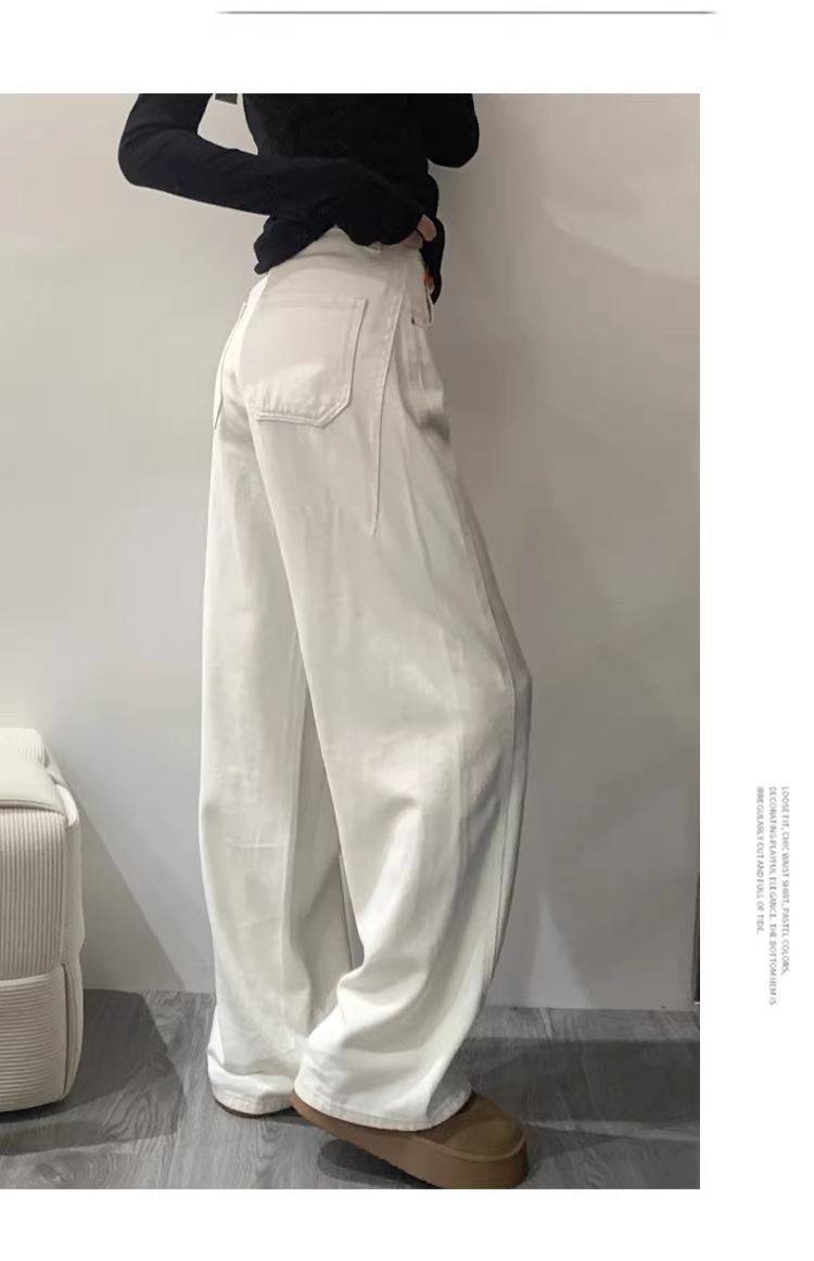 - Quần jeans nữ La Chapelle màu sáng, dáng rộng, cạp cao, kiểu dáng cong, mùa thu đông 2025, dáng suông, tôn dáng