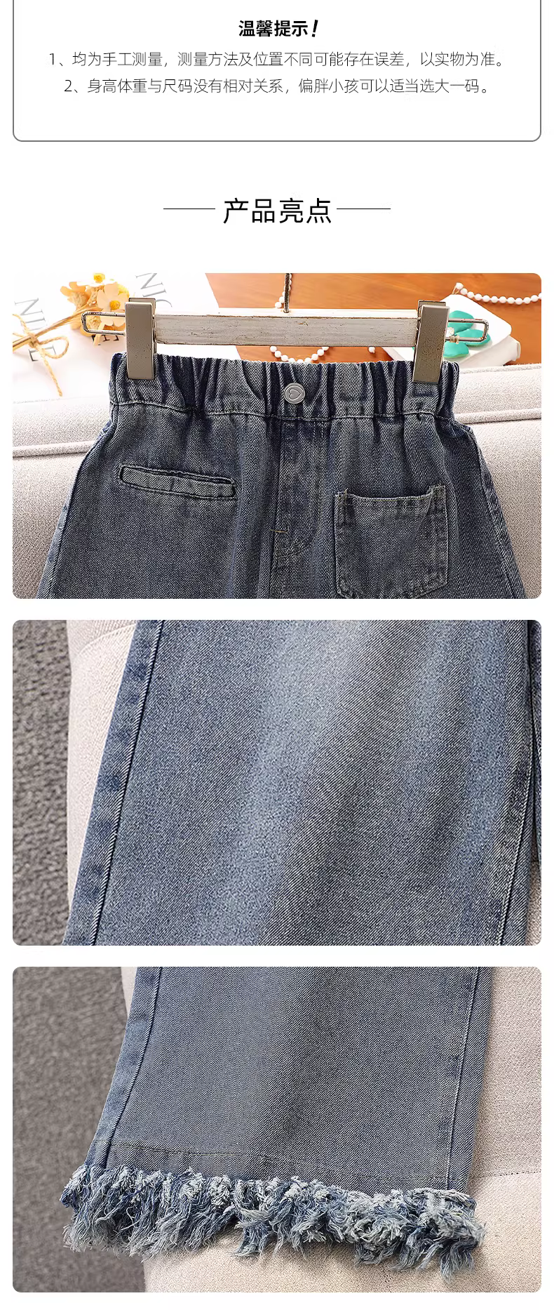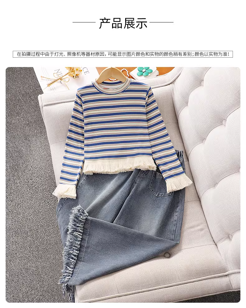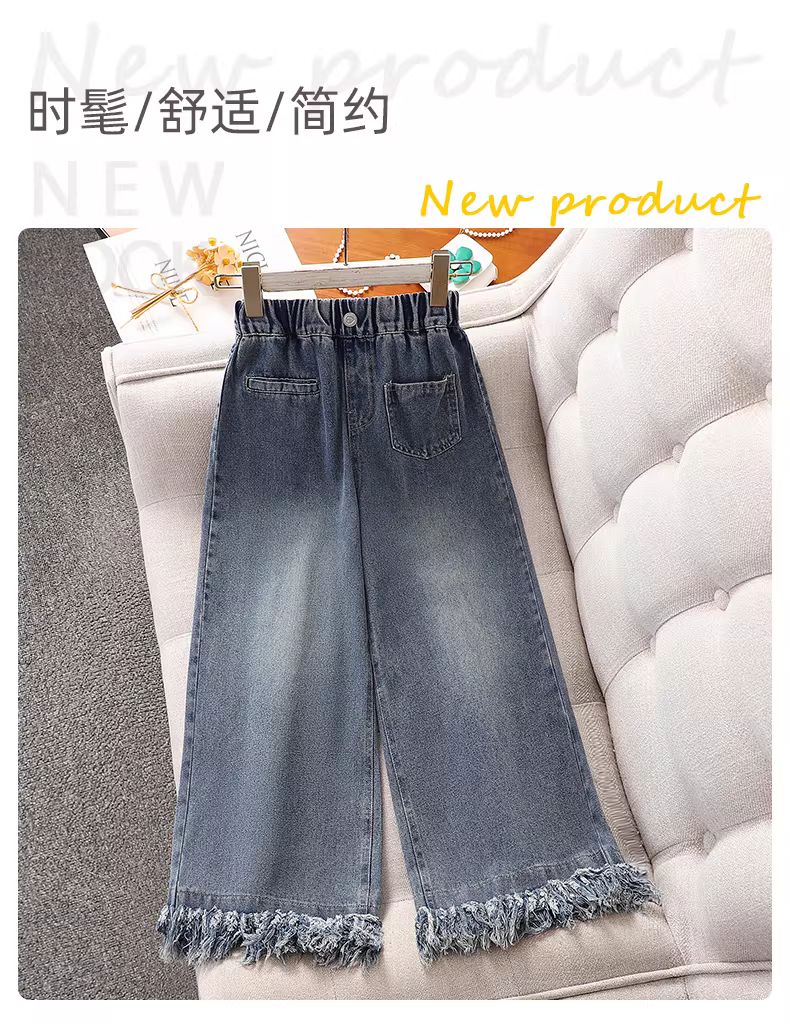 - Quần jeans nữ xuân thu 2025 kiểu mới quần ống rộng tua rua nữ mùa thu quần thẳng thường ngày cho bé gái lớn
