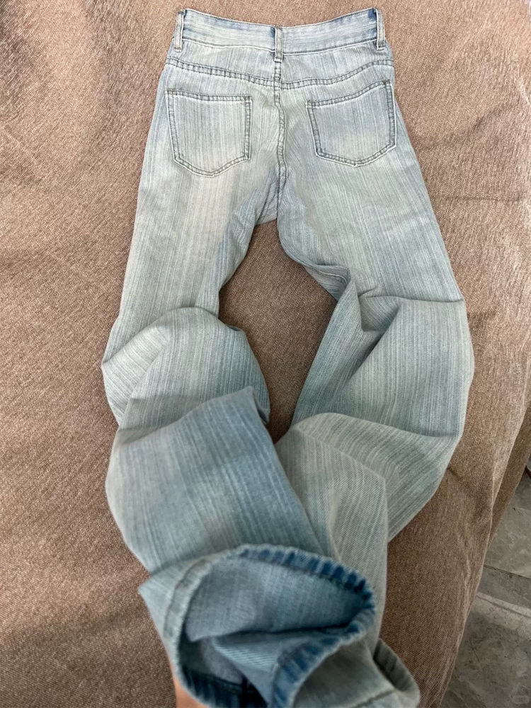 - Quần jeans ống đứng chất liệu tốt dành cho nữ, kiểu mới xuân 2025, size lớn, cạp cao, dáng rộng, che hông, quần ống rộng tôn dáng