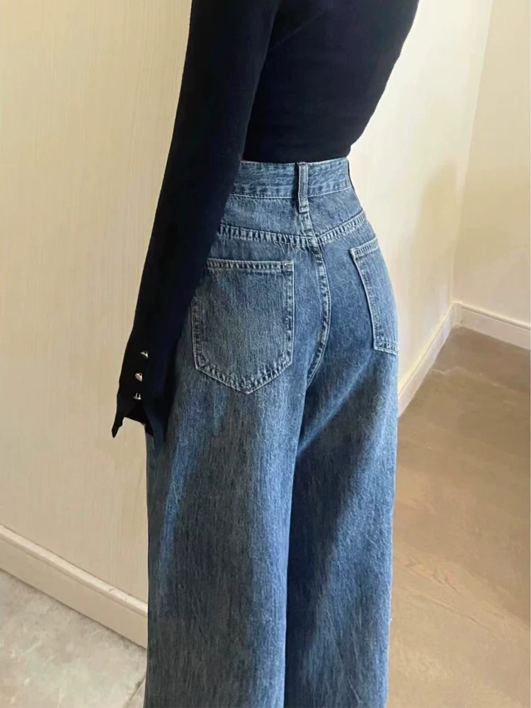 - Quần jeans ống đứng dáng quả lê cho nữ xuân 2025, size lớn, cạp cao, rộng rãi, tôn dáng, ống rộng