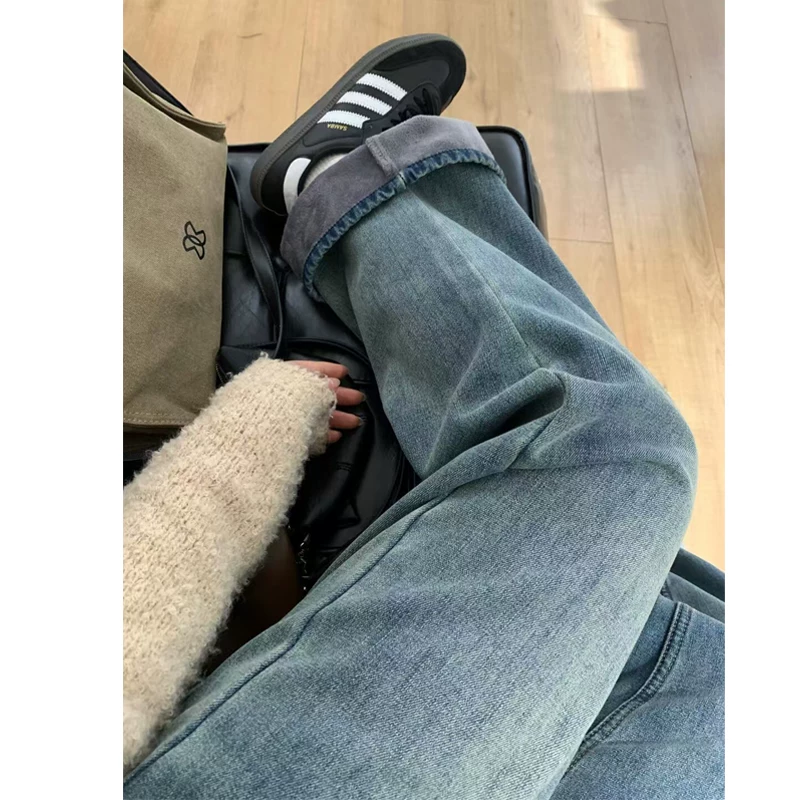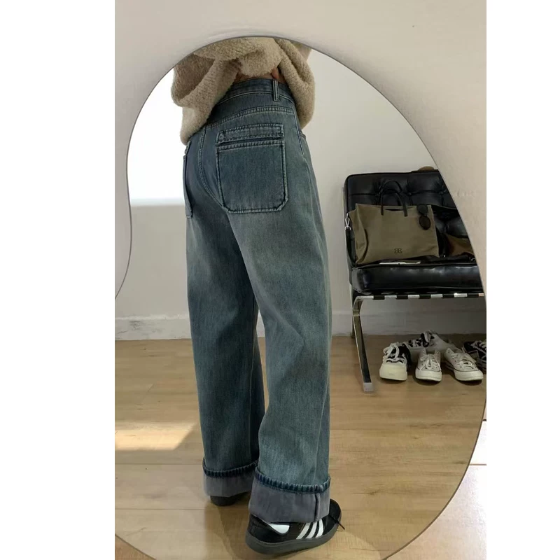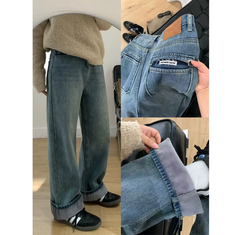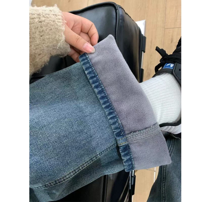 - Quần jeans ống đứng nữ mùa đông 2024 kiểu mới lót lông dày dặn, size lớn, cạp cao, dáng rộng, che hông, tôn dáng, quần ống rộng