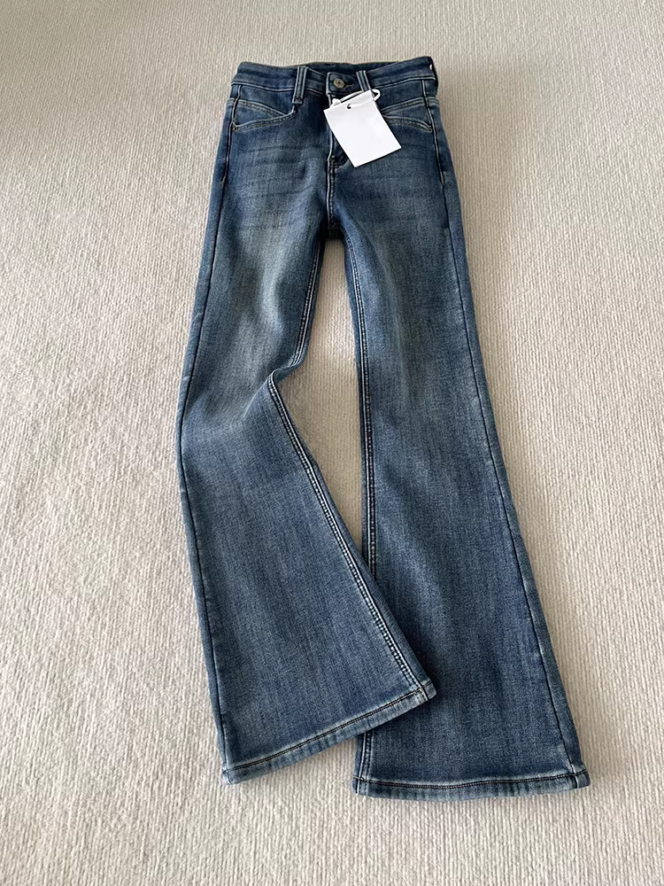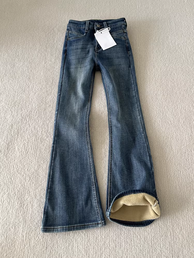 - Quần jeans ống loe dày dặn lót lông cừu La Chapelle dành cho nữ, mẫu mới thu đông 2025, cạp cao, tôn dáng