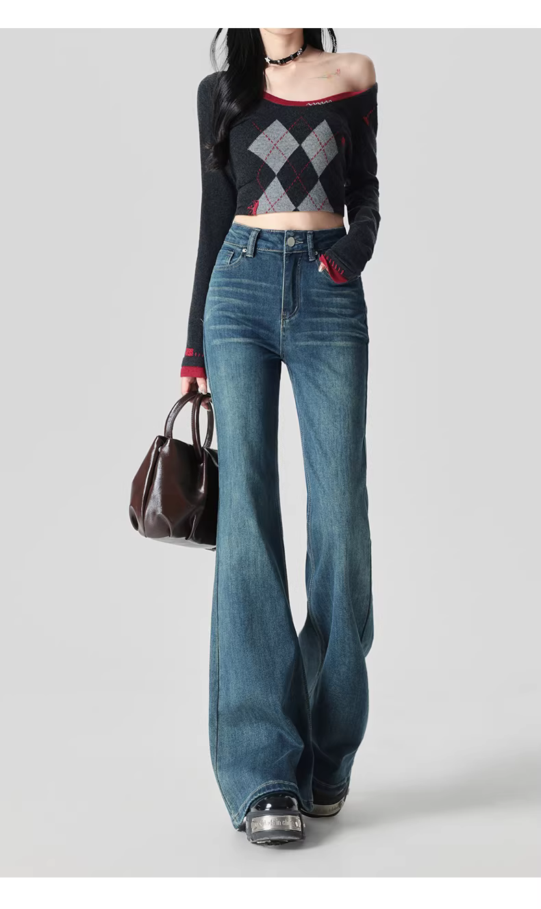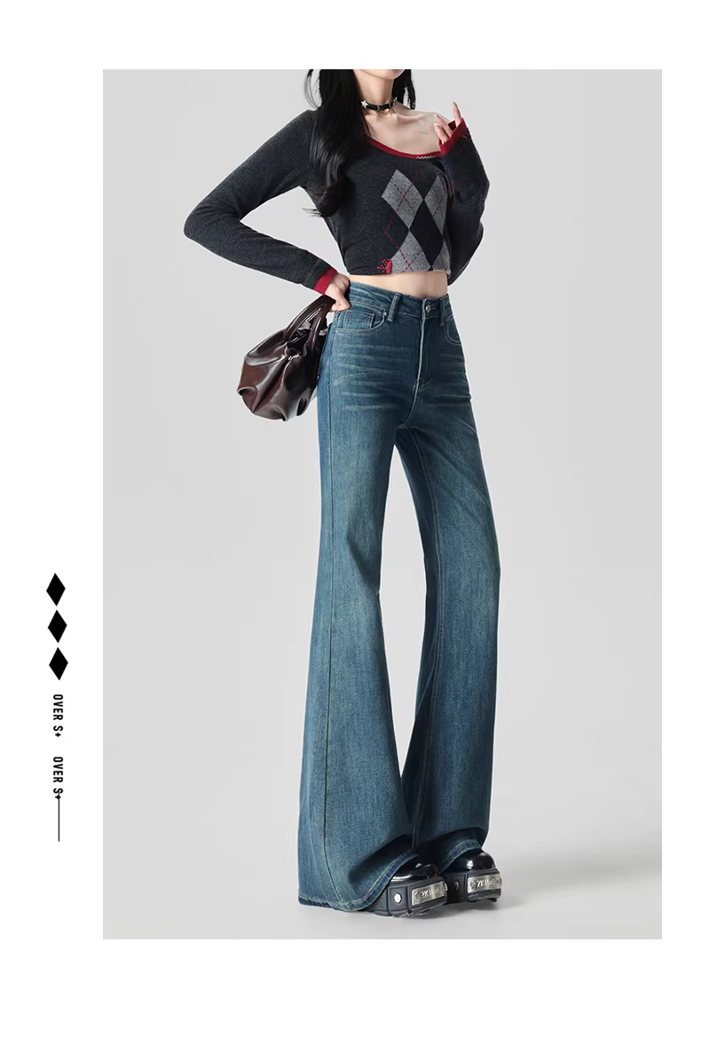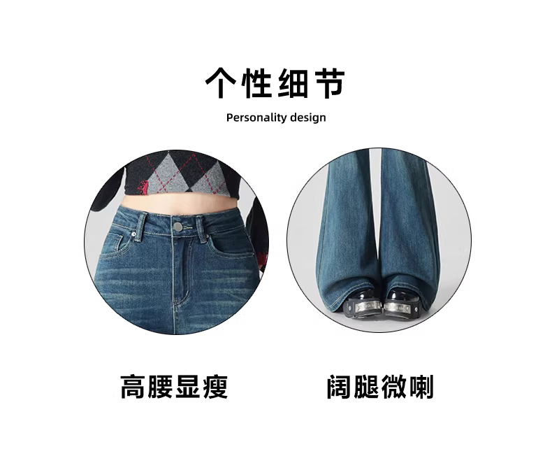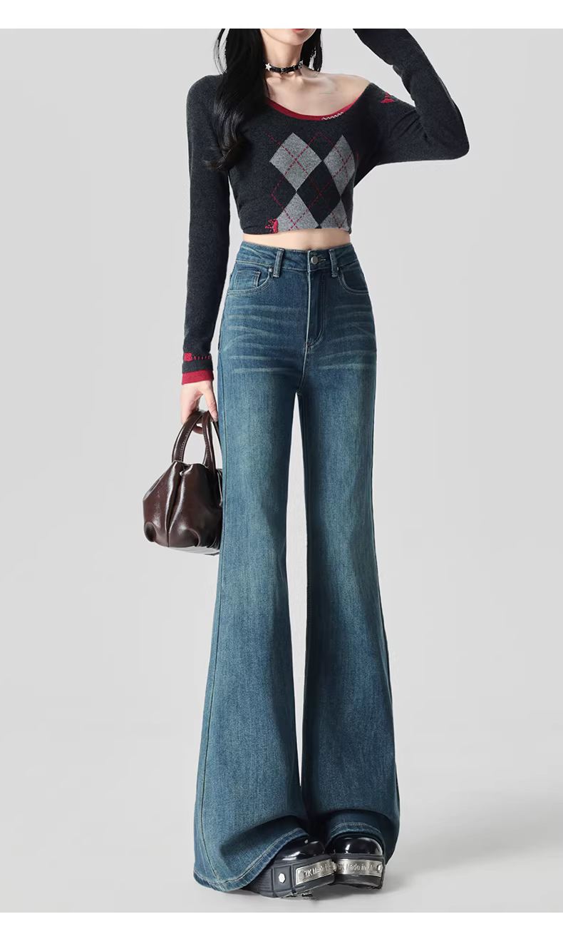 - Quần jeans ống loe dày dặn lót lông La Chapelle dành cho nữ, mẫu mới thu đông 2025, cạp cao, dáng rộng, tôn dáng