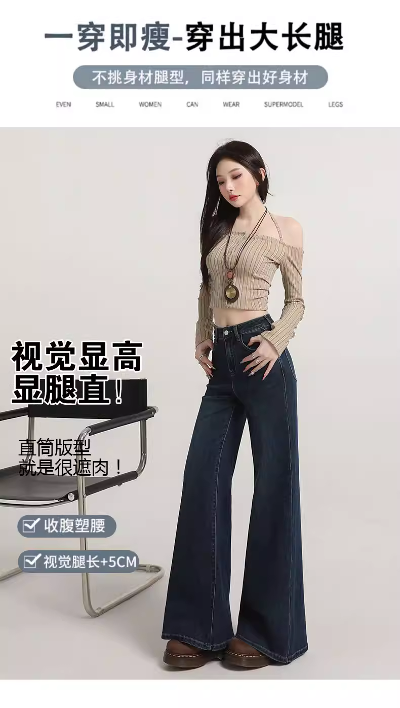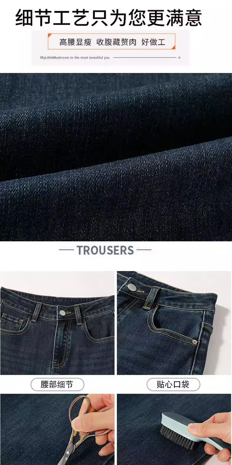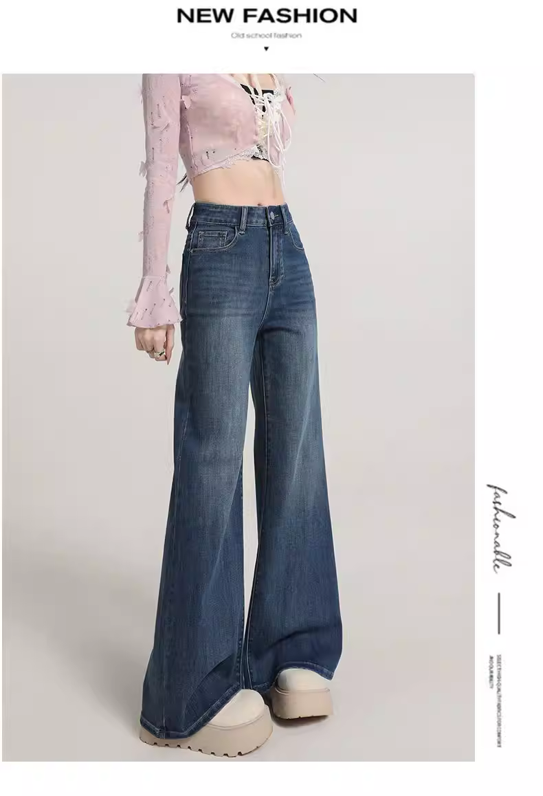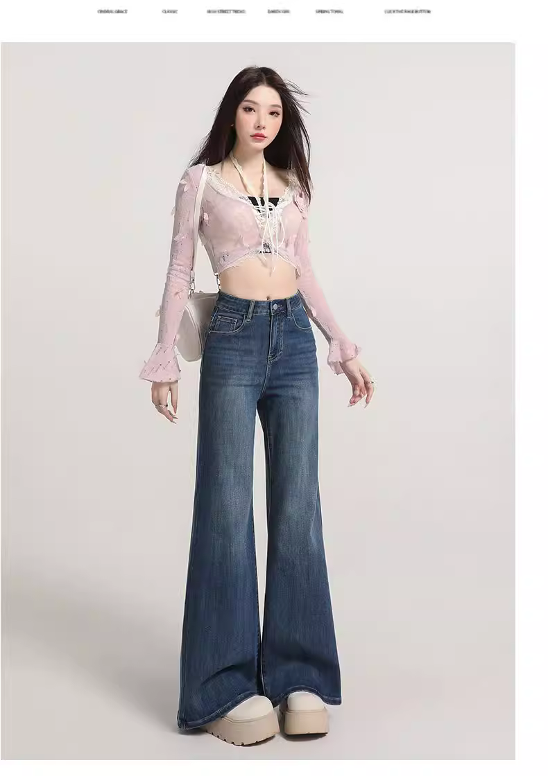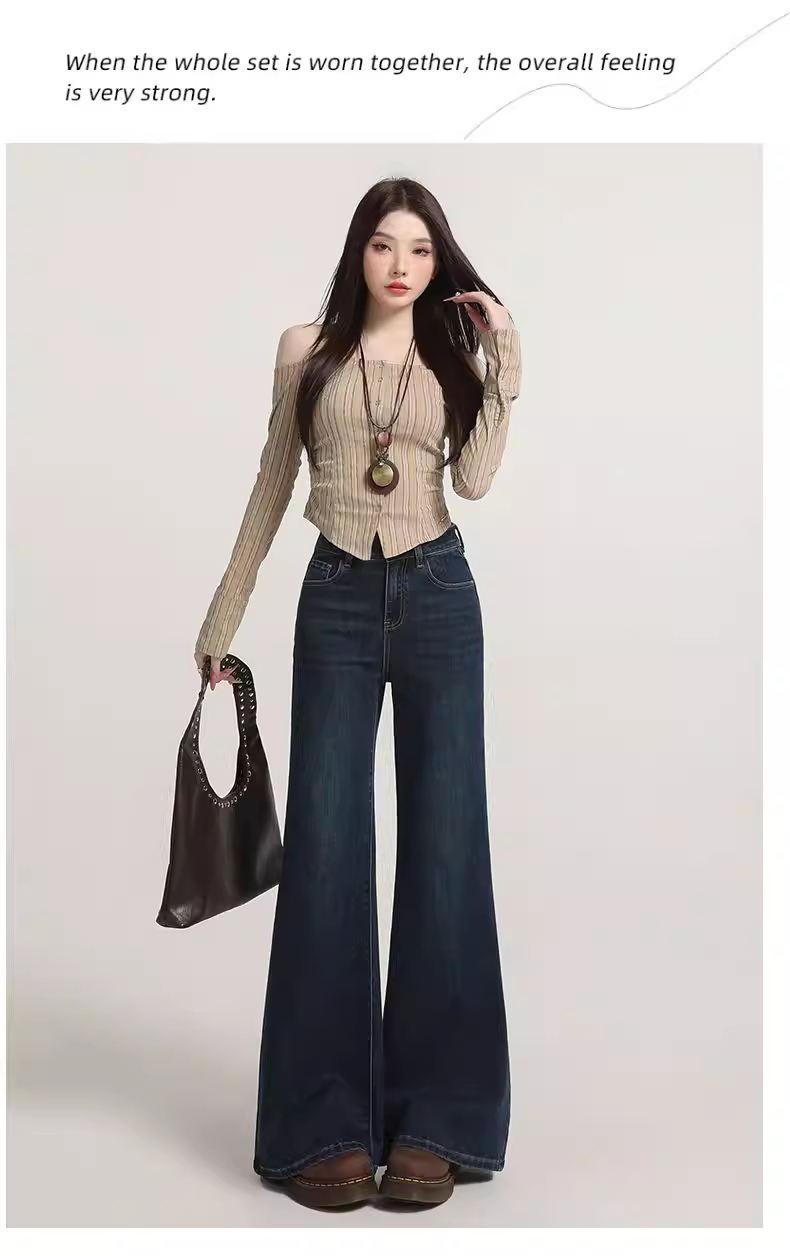 - Quần jeans ống loe dày dặn lót lông màu xanh đậm La Chapelle dành cho nữ, mẫu mới thu đông 2025, không bó sát