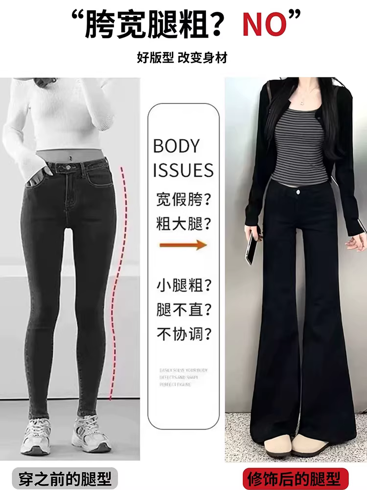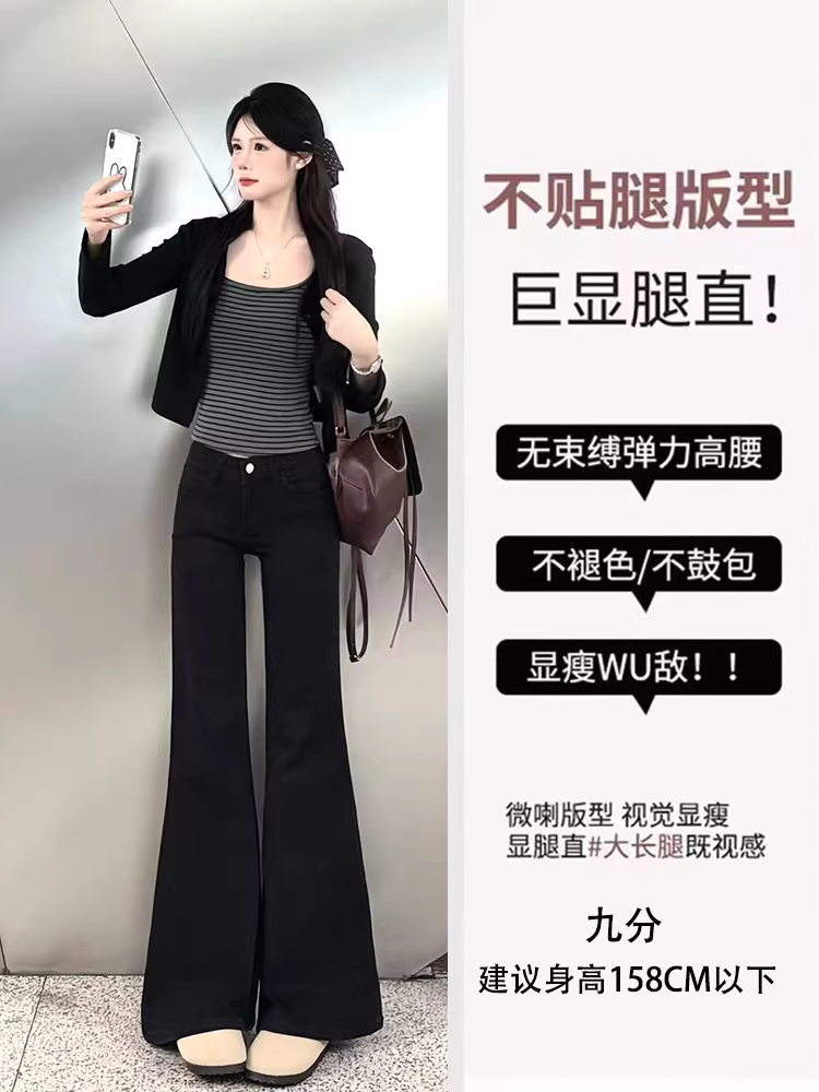 - Quần jeans ống loe dày lót lông cừu đen La Chapelle dành cho nữ, mẫu mới thu đông 2025, dài chấm đất, không bó sát