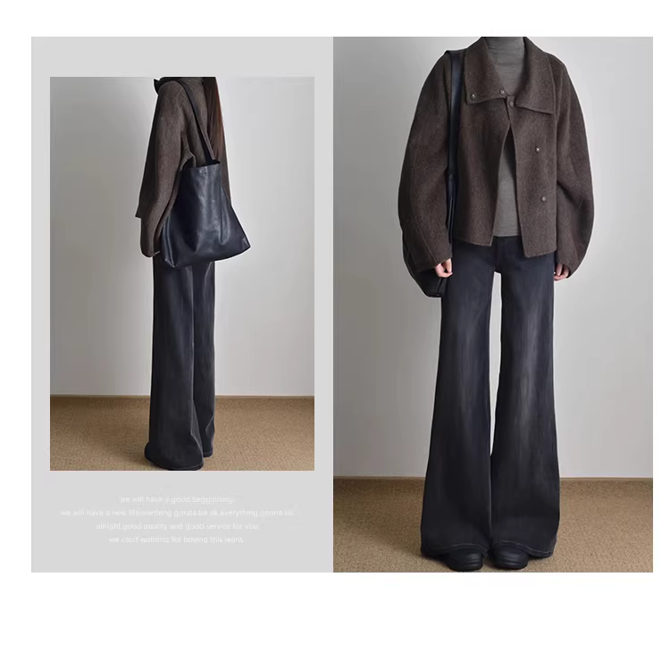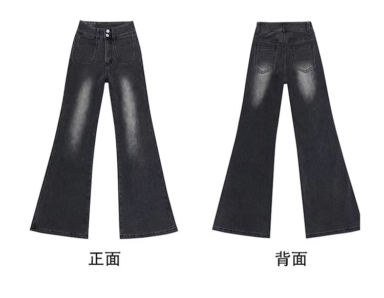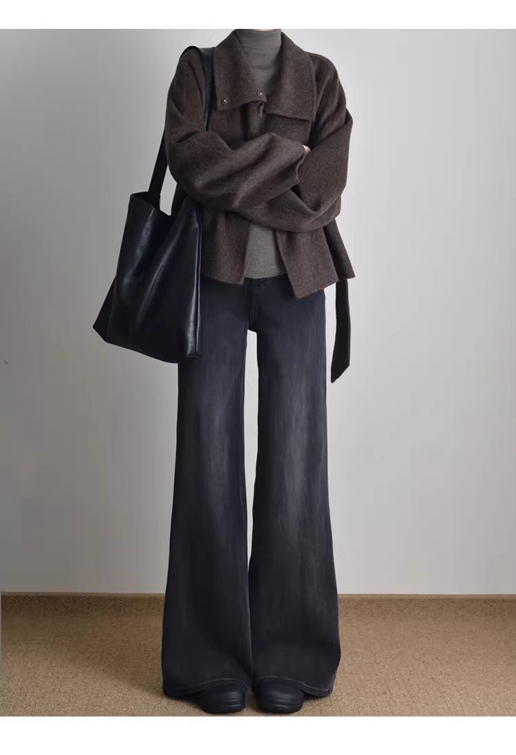 Quần jeans ống loe lót lông màu đen và xám La Chapelle dành cho nữ, mẫu mới thu đông 2025, cạp cao, tôn dáng.
