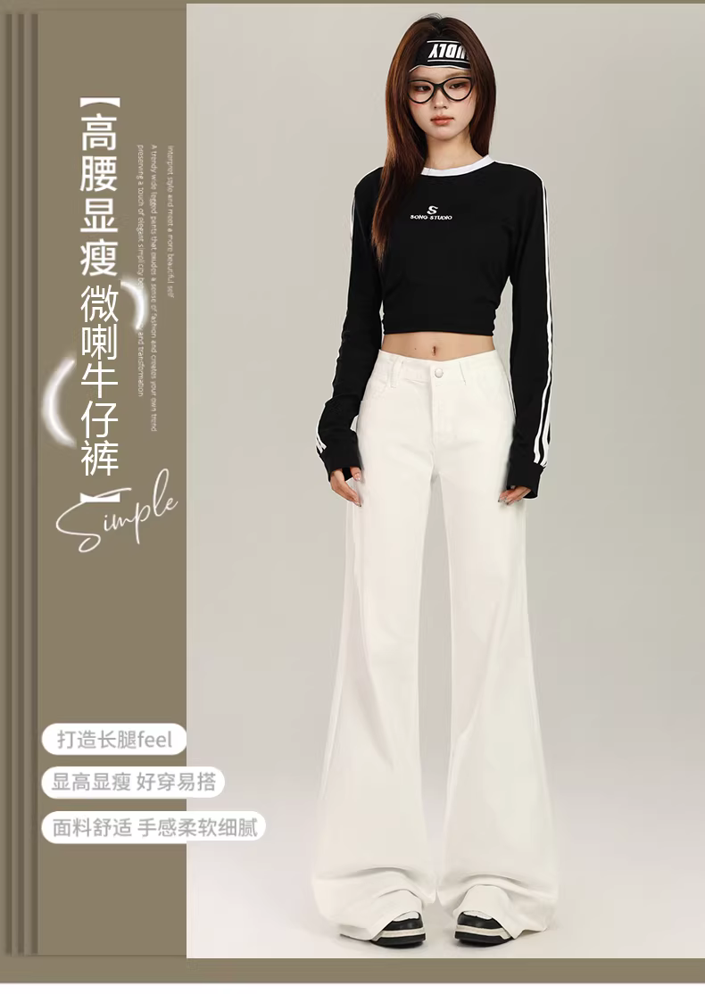 - Quần jeans ống loe lót lông trắng La Chapelle dành cho nữ, mẫu mới thu đông 2025, kiểu dáng ôm sát, ống chuông