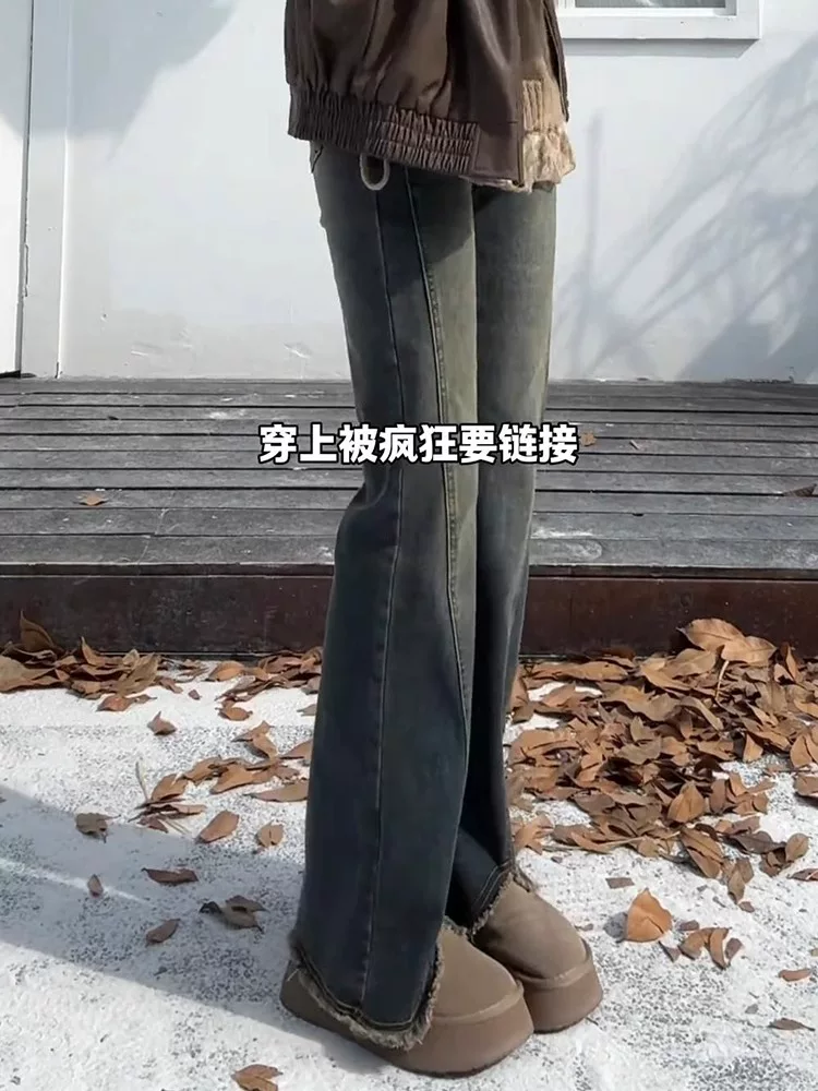 Quần jeans ống loe vintage nữ thu đông 2025, thiết kế size lớn, cạp cao, che hông, tôn dáng, kiểu dáng bootcut