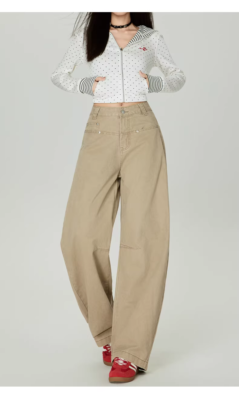 - Quần jeans ống rộng dáng scimitar màu kaki La Chapelle dành cho nữ, mẫu mới thu đông 2025, cạp cao, dáng thẳng, size nhỏ nhắn