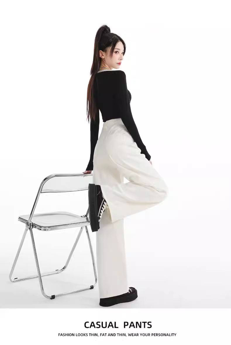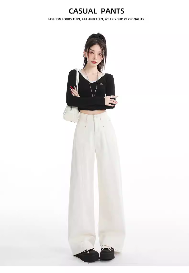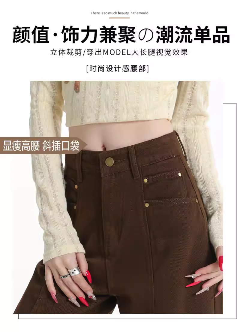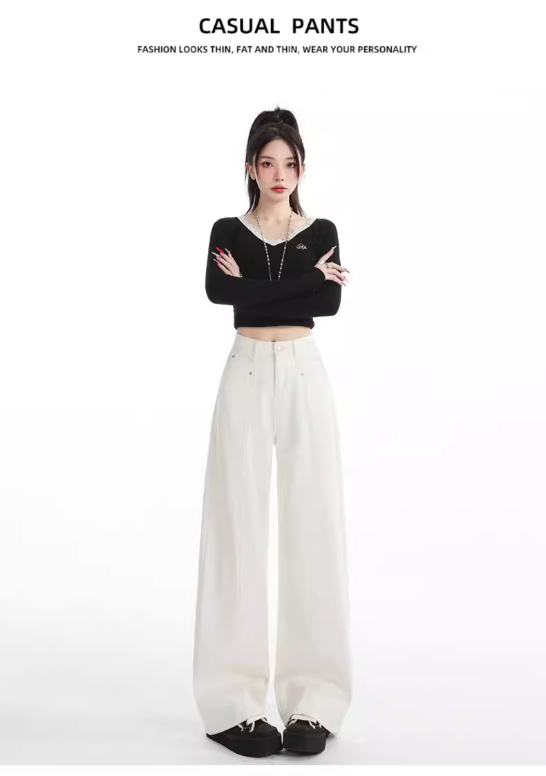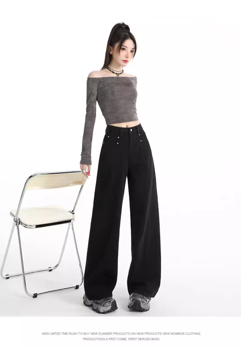 - Quần jeans ống rộng dày dặn lót lông cừu đen La Chapelle dành cho nữ, mẫu mới thu đông 2025, cạp cao, dáng rộng, thẳng